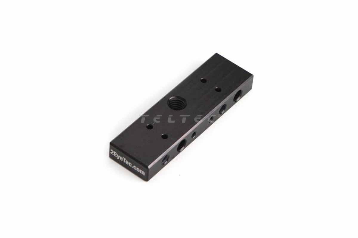 Das 2EyeTec TeradekBracket Bolt TX ist ein Bracket zur Befestigung von Teradek Empfängern (RX) an Kameras, Monitoren und Stativen. Es ist passend für Empfänger der Serien Teradek Bolt Pro 500 (4-40UNC), Bolt 500 XT/LT, Bolt 600, Bolt 1000 (XT). Auf der Unterseite befinden sich ein 3/8" UNC mit ARRI PinLock, sowie zwei 1/4" UNC Gewinde an der Seite. Im Lieferumfang enthalten sind vier M3x10- und vier 4-40UNC x 3/8" Schrauben zur Montage am Bolt.