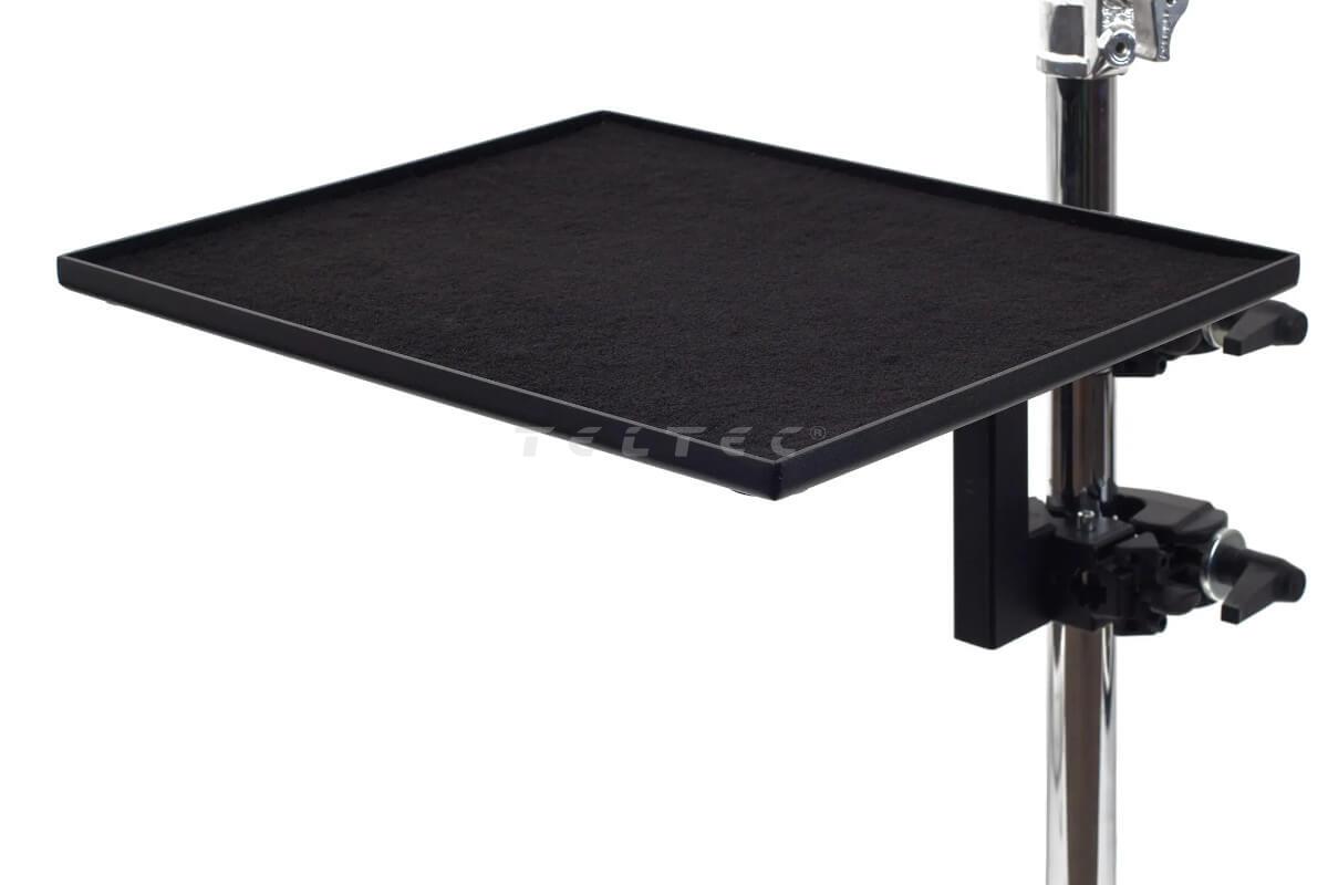 Der adicam Laptop Tray ist für die Aufhängung an einem adicam Cart Tube, einem Licht- oder Monitorstativ mit Super Clamp und Seitenarm konzipiert.