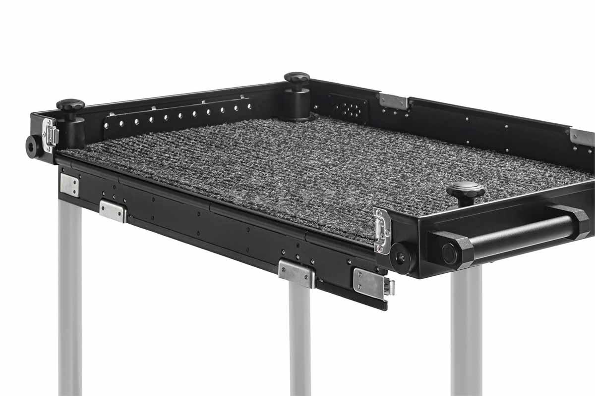 Das adicam Standard+ Top Shelf ist eine obere Ablage für den adicam Standard+ Wagen. Dieses Regalsystem bietet mehrere Vorteile, die es zu einer ausgezeichneten Wahl für die Aufbewahrung Ihrer Foto- oder Videoausrüstung machen. Die Plattform verfügt über einen klappbaren Rand, der in Sekundenschnelle geöffnet werden kann. Mit nur zwei zusätzlichen Entriegelungsschlössern an der Seite des Regals hat man sofort Zugriff auf die Ausrüstung. Das Topshelf ist mit integrierten Gewindeplatten ausgestattet. Diese Mischung aus 1/4'' und 3/8'' Gewindelöchern ermöglicht eine einfache Montage und Demontage der Foto- oder Videoausrüstung. Zubehör kann problemlos befestigt und entfernt werden, ohne zusätzliche Adapter verwenden zu müssen. Zusätzlich verstärkt und aus hochwertigem Aluminium gefertigt, bietet das Regalsystem eine ideale Kombination aus Leichtigkeit, Haltbarkeit und Stabilität.