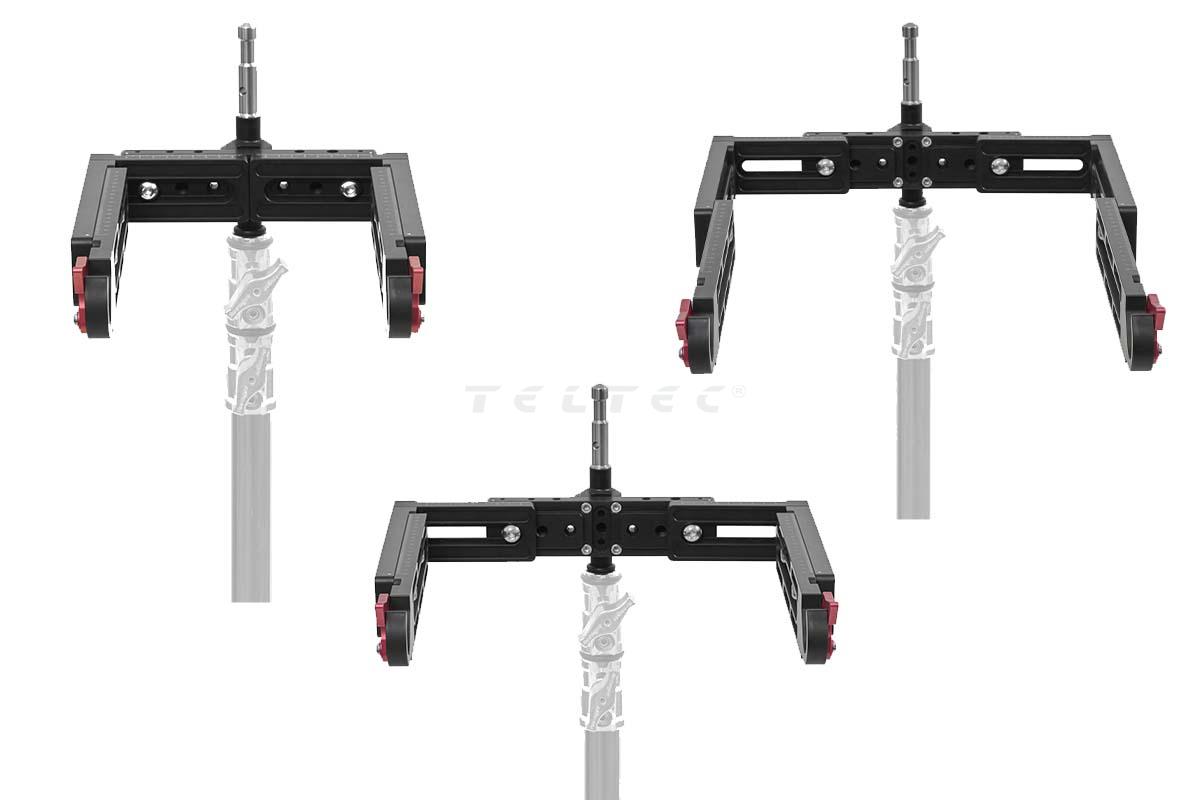 Das adicam Universal Gimbal Docking Bracket dient zum Anbringen von Gimbals und ist in der Breite und Länge verstellbar. Das Bracket wird an Rohren, C-Stativen oder anderen Vorrichtungen mit einem 16-mm (5/8") Baby Pin montiert. Die Markierungen auf beiden Seiten dienen zur Einstellung der Größe für das Gimbal. Zudem gibt es seitlich Löcher in der Halterung, um Schraubendreher oder Inbusschlüssel anzubringen. An der Oberseite befindet sich ein 5/8"-Baby-Pin, der zur Montage von Kamerazubehör dient. Zum sicheren Transport wird das adicam Universal Docking Bracket in einem Koffer mit Schaumstoffeinlage geliefert.