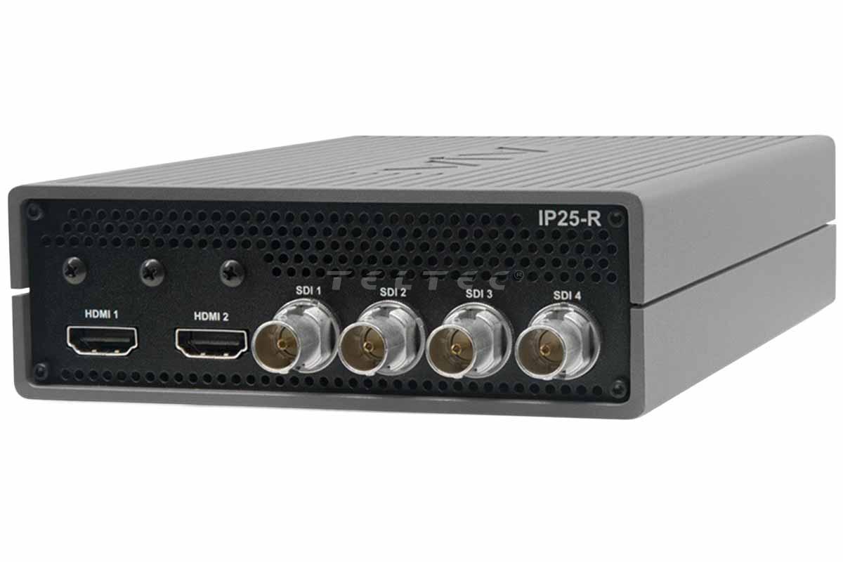 Der AJA IP25-R ist ein leistungsstarker SMPTE-ST-2110-IP-zu-12G-SDI/HDMI-Converter für professionelle Broadcast-, Produktions- und Live-Umgebungen. Mit Dual-10/25-GigE-Ports, 4x 12G-SDI- und 2x HDMI-2.0-Ausgängen liefert er latenzarme Konvertierung bis 4K DCI (4096×2160p60) und sorgt für nahtlose Integration von IP-Videonetzwerken in bestehende SDI/HDMI-Infrastrukturen.
