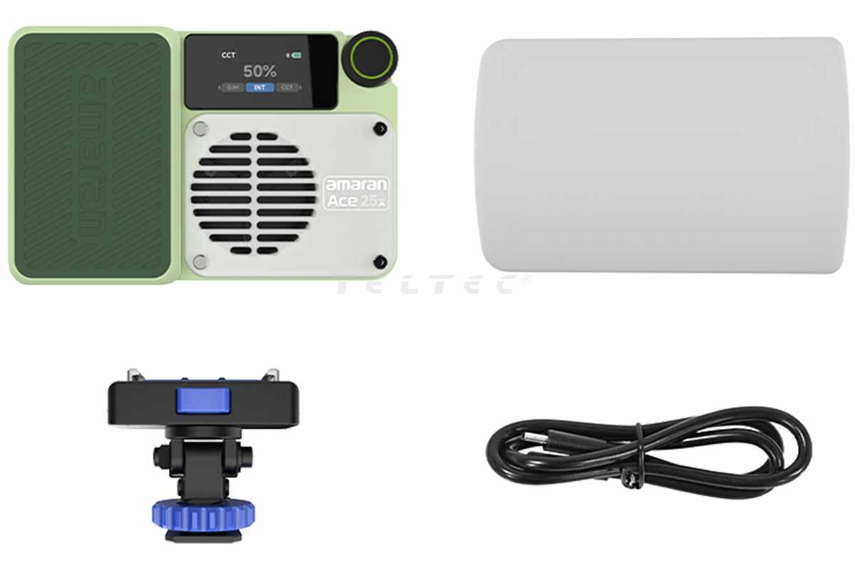 Die Amaran Ace 25x ist eine kompakte Bi-Color-Leuchte mit einer Leistung von bis zu 32 W. Ausgestattet mit der amaran Ace Lock Schnellwechselhalterung und der doppelten Helligkeit, Akkulaufzeit und Ladegeschwindigkeit anderer vergleichbarer Leuchten im Taschenformat, ist die Amaran Ace 25x eine brillant helle und dennoch kompakte Leuchte. Mit einer Lichtleistung von bis zu 32 W im Boost-Modus kann das fortschrittliche optische Design der amaran Ace 6.320 Lux weiches, natürliches Licht bei 0,5 m (5.600 K) ausstrahlen und bietet damit eine besondere Helligkeit, mit der jede Umgebung mühelos beleuchtet werden kann.