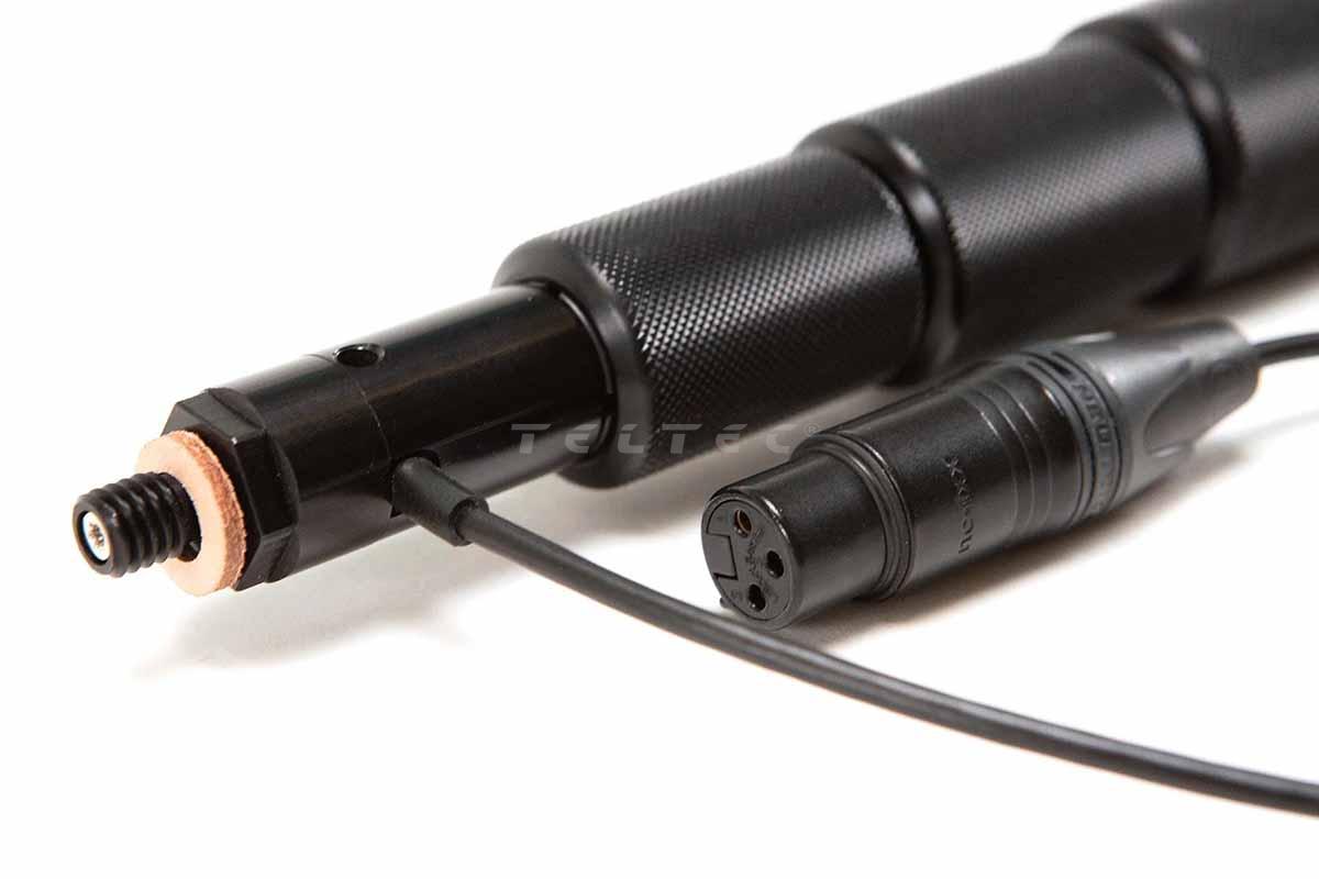 Das Ambient QP Slim Short with straight cable, mono ist eine Tonangel mit gerader Innenverkabelung und seitlichem Kabelauslass. Die Tonangel ist aus Karbon-Verbundstoff gefertigt und aufgrund ihres geringen Durchmessers von nur 3 Zentimetern sehr angenehm zu halten. Darüber hinaus verfügt die Tonangel über 4 Segmente, sodass sich diese gegenüber des Vorgängers der QS-Serie, durch ein leichteres Design auszeichnet. Die Verschlüsse sind so konzipiert, das eine Vierteldrehung nun vollständig ein seitliches Verdrehen verhindert. Die QuickPole Slim Short bietet eine Verlängerung von 100 cm bis 330 cm und wiegt ca. 550 g.