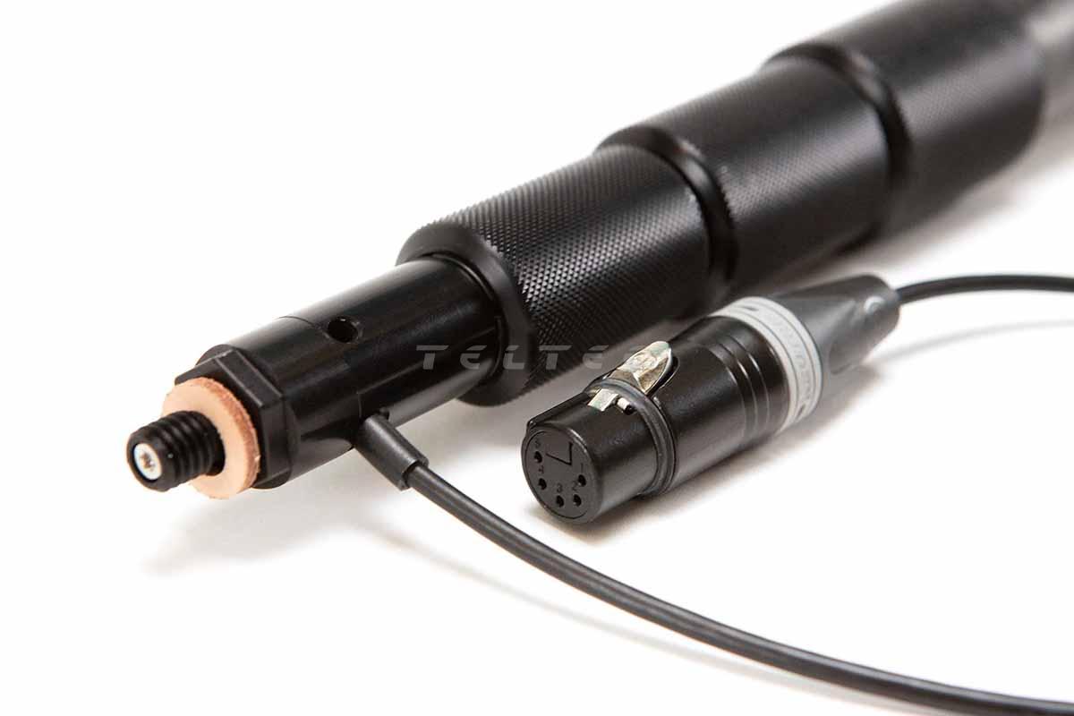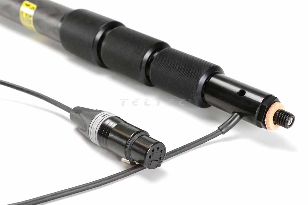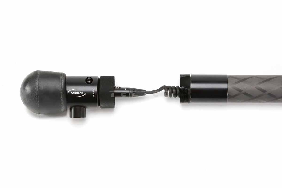 Das Ambient QP Slim Short with straight cable, stereo ist eine Tonangel mit gerader Innenverkabelung und seitlichem Kabelauslass. Die Tonangel ist aus Karbon-Verbundstoff gefertigt und aufgrund ihres geringen Durchmessers von nur 3 Zentimetern sehr angenehm zu halten. Darüber hinaus verfügt die Tonangel über 4 Segmente, sodass sich diese gegenüber des Vorgängers der QS-Serie, durch ein leichteres Design auszeichnet. Die Verschlüsse sind so konzipiert, das eine Vierteldrehung nun vollständig ein seitliches Verdrehen verhindert. Die QuickPole Slim Short bietet eine Verlängerung von 100 cm bis 330 cm und wiegt ca. 550 g.