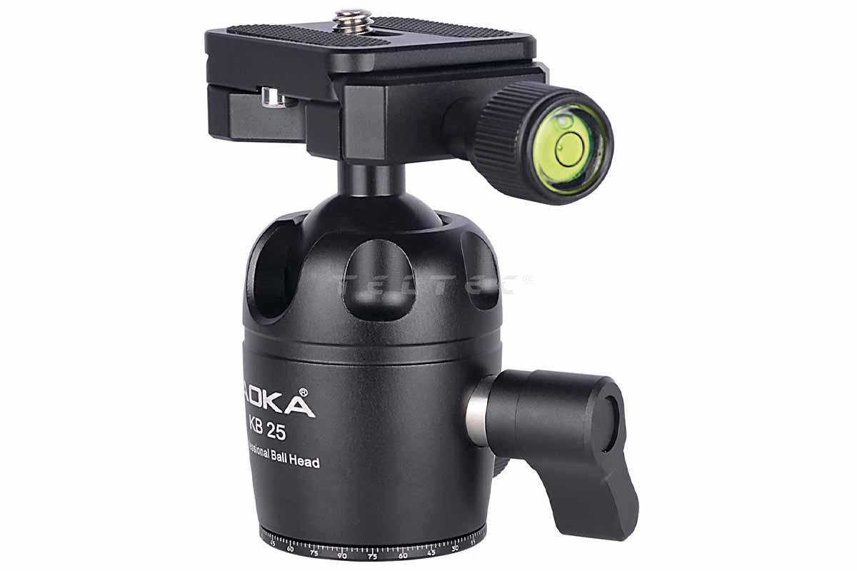 Der AOKA KB25 ist ein stabiler CNC-gefräster Kugelkopf aus hochfester Alu-Legierung mit hoher Tragkraft. Die enthaltene Schnellkupplung ist zum ARCA-SWISS System kompatibel. Obwohl der Kopf sehr kompakt ist, eignet er sich dennoch für hohe Traglasten.