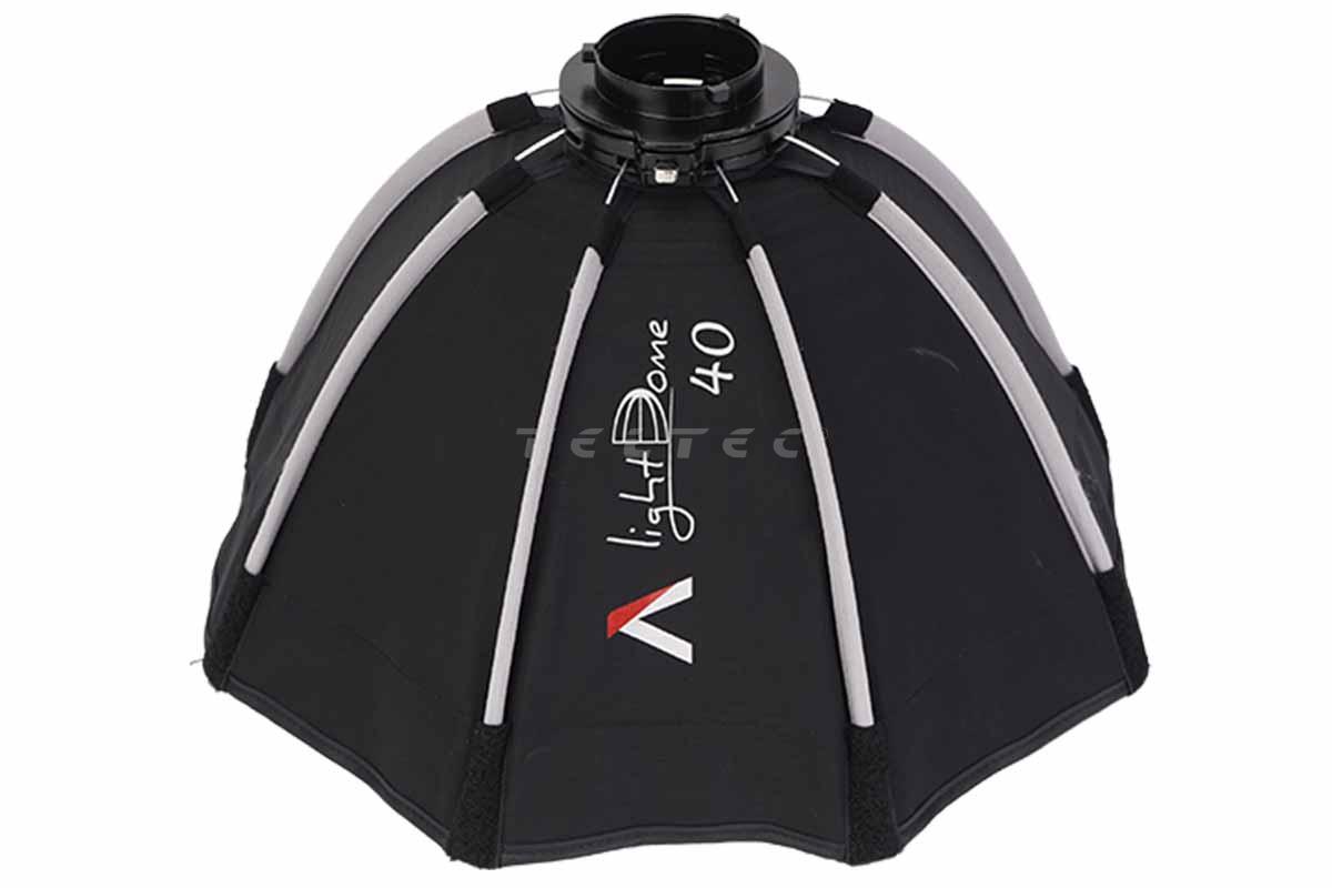Die Aputure Light Dome 40 ist eine runde Mini-Softbox mit einem Diffusor von 40 cm Durchmesser. Sie ist mit einem Mini ProLock Mount zur Befestigung an der STORM 80c ausgestattet. Die faltbare Struktur der Light Dome 40 ist so konzipiert, dass sie schnell zusammengebaut und ebenso schnell zur Aufbewahrung zusammengeklappt werden kann.