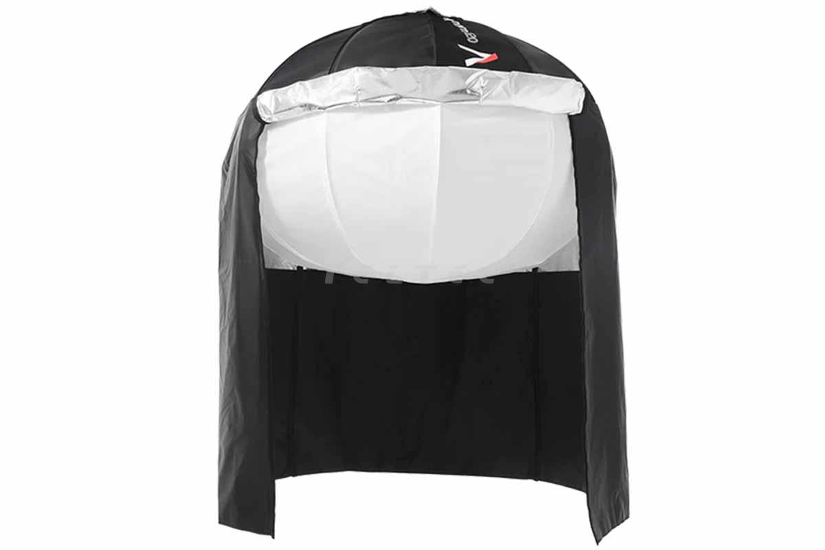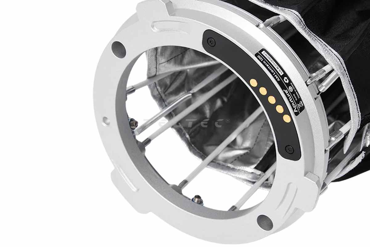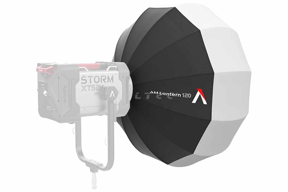 Die Aputure Mount Lantern 120 ist eine 120 cm große Rundum-Softbox mit omnidirektionalem Lichtcharakter, konzipiert für LED-Leuchten mit Aputure Mount, darunter die Electro Storm Serie und die STORM XT52. Durch das integrierte Schnellspannsystem lässt sich die Laterne innerhalb weniger Sekunden aufbauen. Die Lichtwirkung eignet sich ideal zur flächigen Raumbeleuchtung, etwa für Interviews, Szenenausleuchtung oder Ambient Light. Die mitgelieferten Lichtkontroll-Klappen (Skirts) erlauben eine gezielte Steuerung des Abstrahlverhaltens. Die kompakte Transporttasche macht die Laterne mobil einsetzbar.