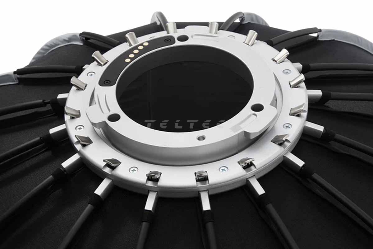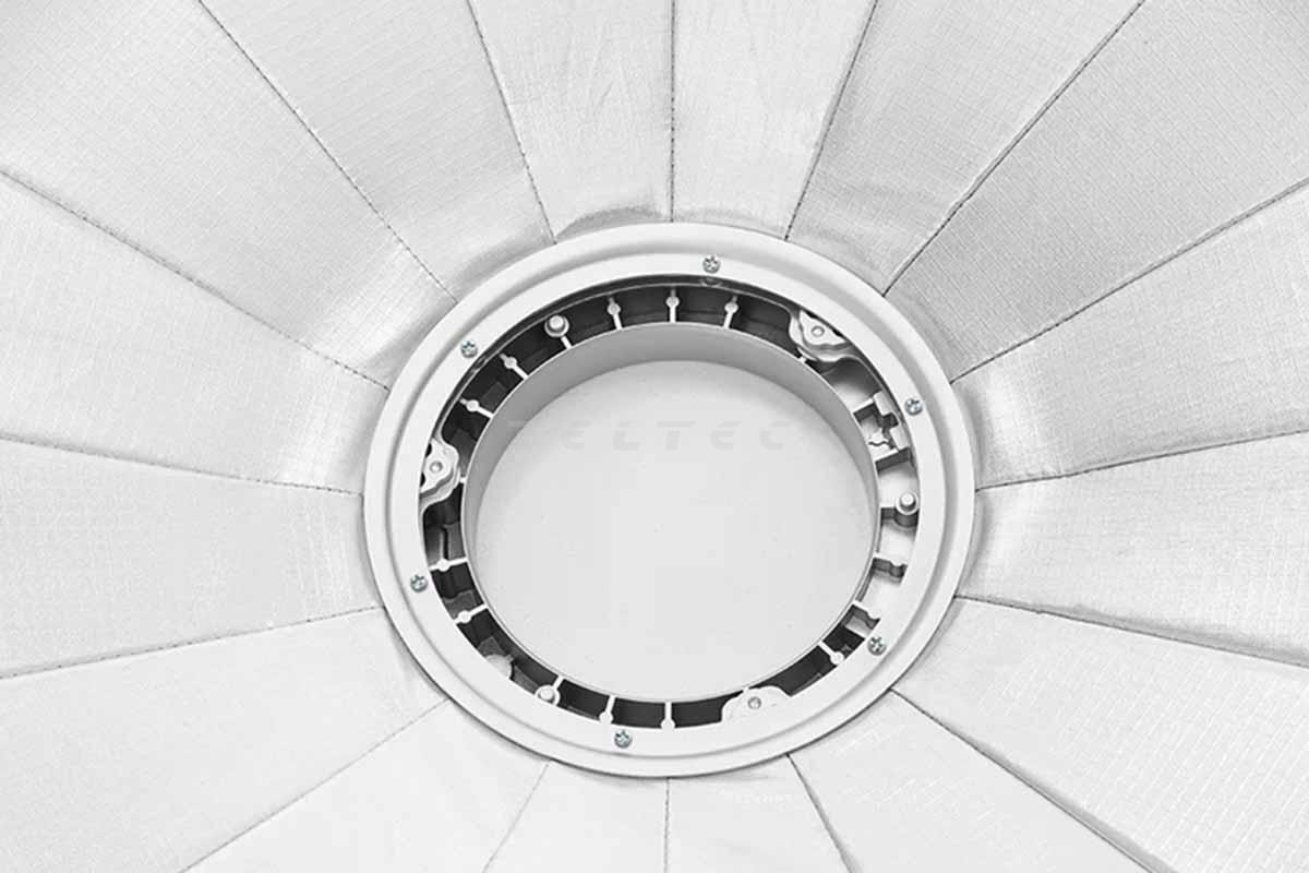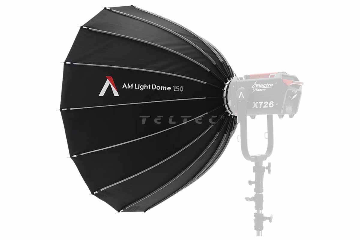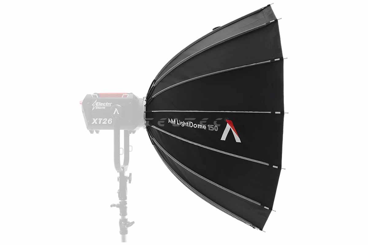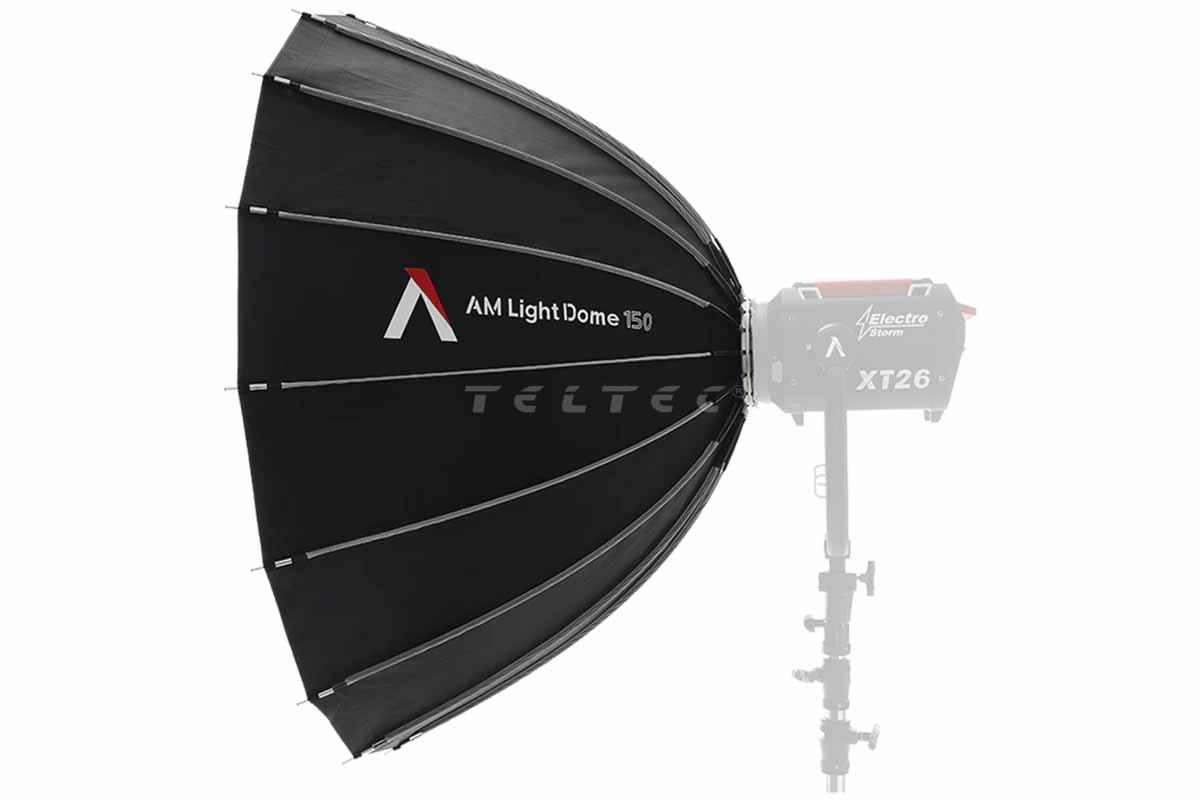 Der Aputure Mount Light Dome 150 ist eine kreisrunde Parabol-Softbox mit 150 cm Durchmesser, optimiert für LED-Leuchten mit Aputure Mount wie die Electro Storm Serie oder die STORM XT52. Die runde Form erzeugt natürliche, kreisrunde Reflexionen - ideal für Beauty-, Porträt- und Werbeaufnahmen. Das Schnellaufbausystem ermöglicht eine zügige Montage am Set. Im Lieferumfang enthalten sind zwei Frontdiffusoren (1,5 und 2,5 Blendenstufen) sowie ein 50° Grid zur Lichtkontrolle. Das gesamte System ist in einer kompakten Tragetasche untergebracht und eignet sich für den professionellen mobilen Einsatz.