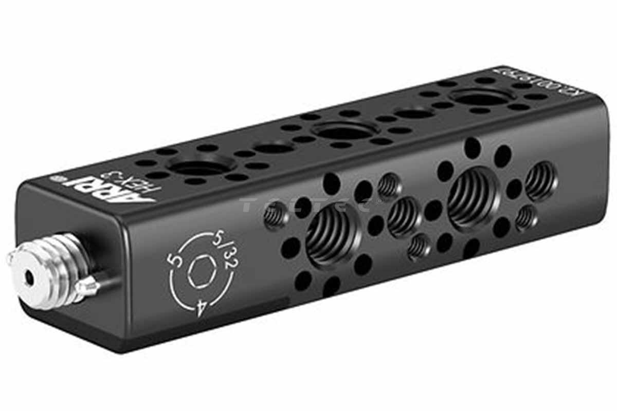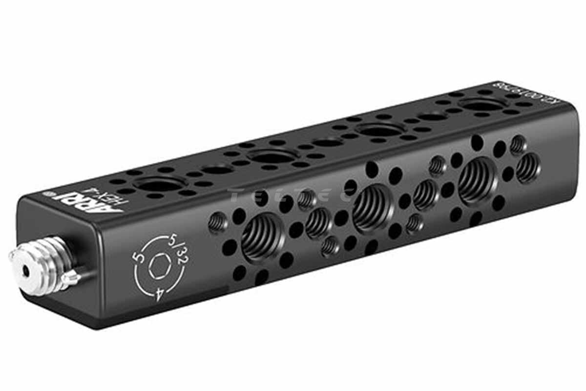 Das ARRI KK.0051730 Handle Extension Set for ALEXA 35 ist ein Set aus sieben Erweiterungsblöcken mit zahlreichen Interfaces. Die Griffverlängerungen sind im Stil des Camera Center Handle CCH-4 gestaltet. Die Bezeichnung jedes HEX-Moduls gibt die Anzahl der 3/8"-16-Gewindebohrungen auf der Oberseite an. Die Module können flexibel miteinander kombiniert werden, um entweder einen oberen Griff zu verlängern oder ein individuelles Griffdesign zu erstellen. Jedes HEX-Modul ist an der Vorderseite mit einer 3/8"-16-Schraube ausgestattet (ARRI Multi-HEX-Schraube mit vier verschiedenen Werkzeugoptionen), die zusätzlich zwei verdrehsichere Fixierstifte enthält. Auf der Rückseite befindet sich eine entsprechende Gewindeschnittstelle. Darüber hinaus verfügen die Module über mehrere RMB-3- sowie 1/4"-20-Gewindebohrungen. Diese Erweiterung kann außerdem genutzt werden, um einen sogenannten „Hollywood Handle“ zu konstruieren, der eine Kamerabedienung von der Rückseite ermöglicht, ohne den eingebauten Akku zu berühren. Das Handle Extension Set für die ALEXA 35 umfasst die Handle Extension HEX-A und wird in einer Schaumstoffeinlage geliefert, die in einen Pelican 1170 Koffer passt (Koffer nicht im Lieferumfang enthalten).