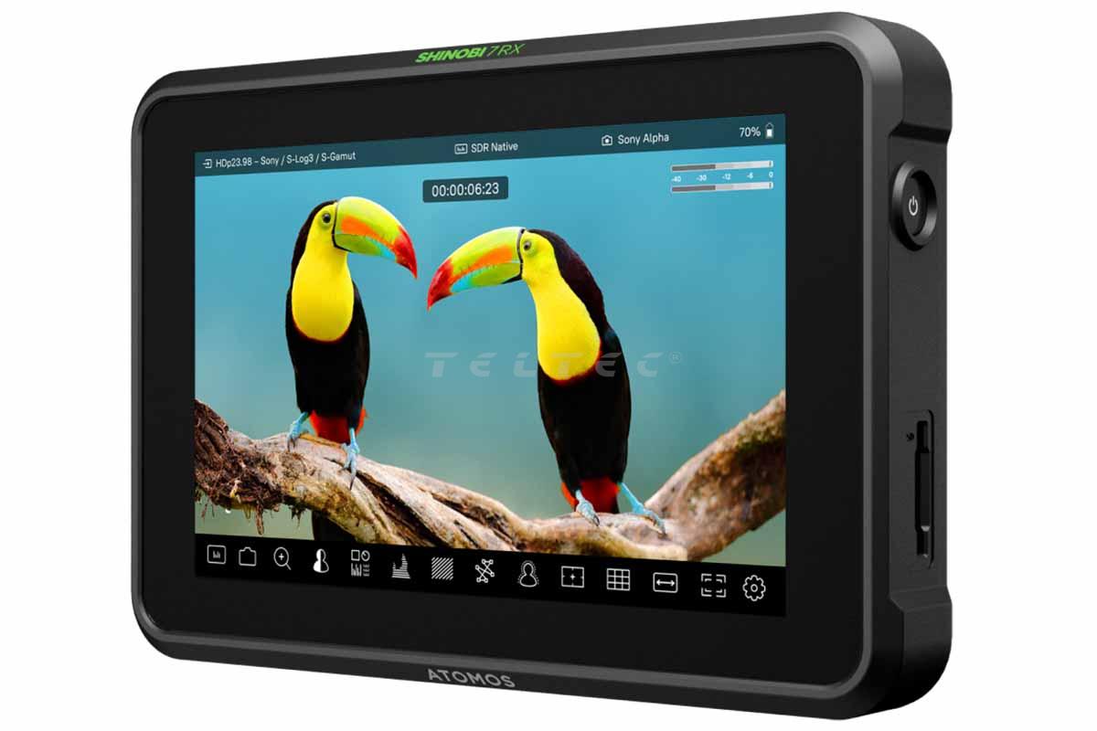 Der Atomos Shinobi 7 RX ist ein superheller 7-Zoll-HDR-Monitor mit 2200 nits Spitzenhelligkeit, entwickelt für Regisseure, Focus Puller und Live-Produktionen. Er kombiniert die Leichtbauweise der Shinobi-Serie mit erweiterten Funktionen wie Kamerasteuerung, Touch-to-Focus und drahtloser Videoübertragung über das Atomos TX-RX-System. Dank Kamerasteuerung via USB-C für Canon, Fujifilm, Nikon, Panasonic, Sony sowie Z CAM (über serielles Kabel) lassen sich Blende, Verschlusszeit und ISO direkt einstellen. Integriertes Wi-Fi 6E ermöglicht latenzarmes (<60 ms) Monitoring mit bis zu 300 m Reichweite. Präzise Monitoring-Tools wie EL Zone/ARRI False Color, Waveform, Histogramm, Zebra, Focus Peaking und Zoom sind serienmäßig integriert.