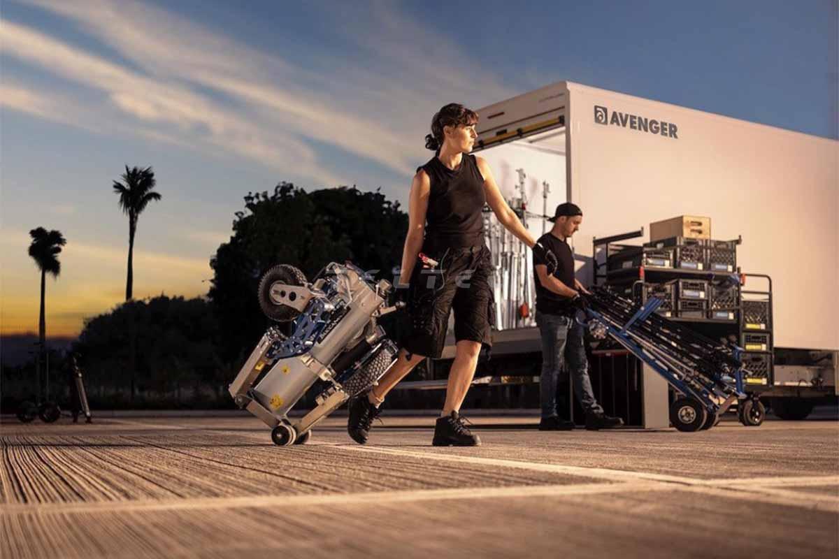 Das Avenger B7030FF Buccaneer Stativ 3 m ist ein revolutionäres Schwerlaststativ für Filmscheinwerfer, das als Antwort auf die Nachfrage der Industrie nach einem Wind-Up-Stativ mit niedriger Ladehöhe und TÜV-Zertifizierung entwickelt wurde und eine Maximalhöhe von 3 m erreicht. Die hohe Traglast (80 kg) wird durch zwei einzigartige Schlüsselmerkmale erreicht: erstens die nach hinten klappbare Basis und zweitens die bundlose Säule aus mehreren Segmenten. Die Kombination dieser beiden Merkmale ermöglicht es, das Stativ in einer Höhe von nur 92,5 cm mit einer Leuchte zu bestücken. Damit ist es das weltweit am tiefsten zu beladende Wind-Up-Stativ mit einer maximalen Höhe von 3 m. Sobald die Lampe angebracht ist, kann die Basis des Stativs mithilfe der drei Nivellierfüße, die auch geringe Bodenunebenheiten ausgleichen, sicher in den Betriebsmodus versetzt werden.