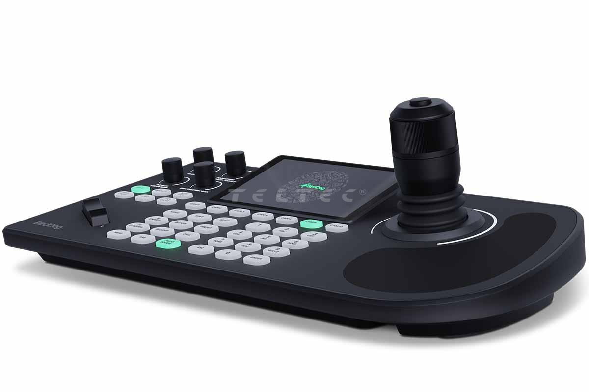 Das BirdDog KBD ist ein PTZ-Controller der die Steuerung von bis zu 255 Kameras übernimmt. Der Controller verfügt über ein Display, welches zum Einen das Live-Bild einer Kamera zeigt, aber auch Zugriff auf das User Interface bietet. Die Menüansicht ist dabei zwischen dem Hell- und Dunkelmodus umschaltbar. Für das Live-Bild ist eine Multiviewansicht von bis zu 4 Kameras gleichzeitig, wie auch eine Vollbildansicht eines einzelnen Kamerabildes möglich. Durch die nahtlose Integration in Plattformen wie TriCaster oder vMix wird das ausgewählte Bild auf dem Display des KBD von einem Tally-Rahmen umgeben, um die Sichtbarkeit eines "Program" oder "Preview" Signals zu visualisieren. Darüber hinaus ist der Controller mit einem 4D-Joystick ausgestattet, der über einen Feinabstimmungs-Modus verfügt und die Empfindlichkeit des Joysticks um das 10-fache erhöht. Von 36 hintergrundbeleuchteten Tasten, erlauben 6 den direkten Zugriff auf eine verbundene Kamera, während weitere Tasten zur Fokussierung, zum Weißabgleich oder für Presets dienen. Für die PTZ-Steuerung stehen verschiedene Protokolle, wie VISCA-IP, NDI, ONVIF, PELCO-P oder PELCO-D zur Verfügung. Darüber hinaus sind mit RS-232 und RS-422 zwei serielle Schnittstellen integriert. Per RJ45-Anschluss ist die Stromversorgung via Power-over-Ethernet möglich. Alternativ gibt es einen DC-12-V-Anschluss.