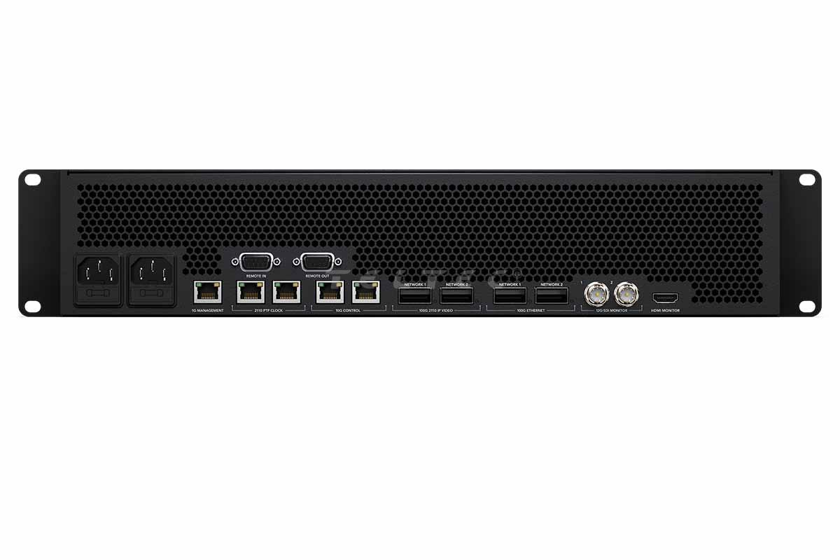 | Eingänge für SMPTE ST-2110 IP Audio | 16 eingebettete Audiokanäle in jeden 2110-IP-Videostream via 100G-Ethernet |