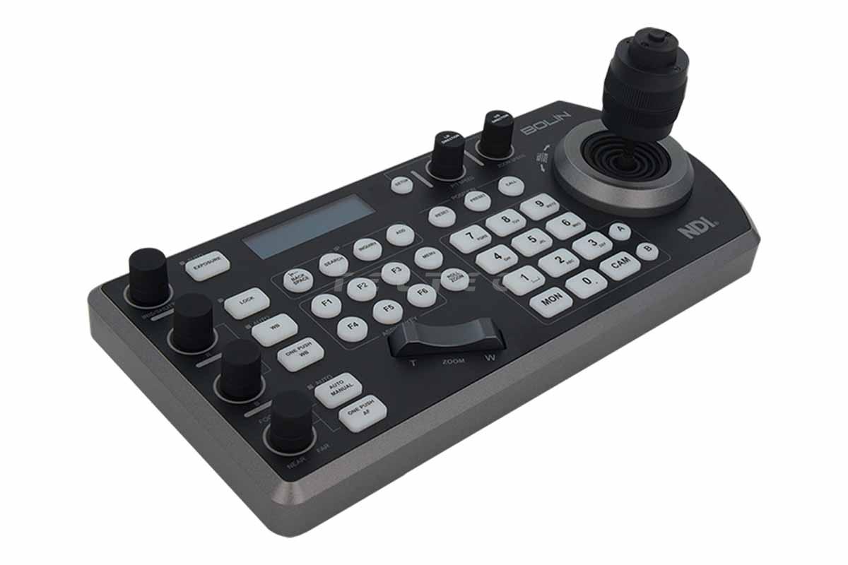 Die Leistungsfähigkeit, Flexibilität und intuitive, präzise Kamerasteuerung des Bolin KBD-1020N PTZ-Kamera-Controllers machen ihn zum idealen Partner für multiple PTZ-Kamera-Setups in Live-NDI-Produktionsumgebungen wie z.B. Rundfunkstudios, Bildungs- und Videokonferenzräumen, Konzerthallen oder Kirchen. Er verfügt über beleuchtete Drucktasten für die Kameraauswahl und einen dreiachsigen Joystick für sanfte, präzise Kamerabewegungen. Über sein Web Interface lassen sich u.a. Kameras im Netzwerk suchen, Funktionstasten zuweisen, Konfigurationen im- und exportieren und der Joystick kalibrieren. Mit dem Bolin KPD-1020N können alle Kameras aller Marken, die Visca Over IP fähig sind, in einem System zusammengefasst und gesteuert werden.