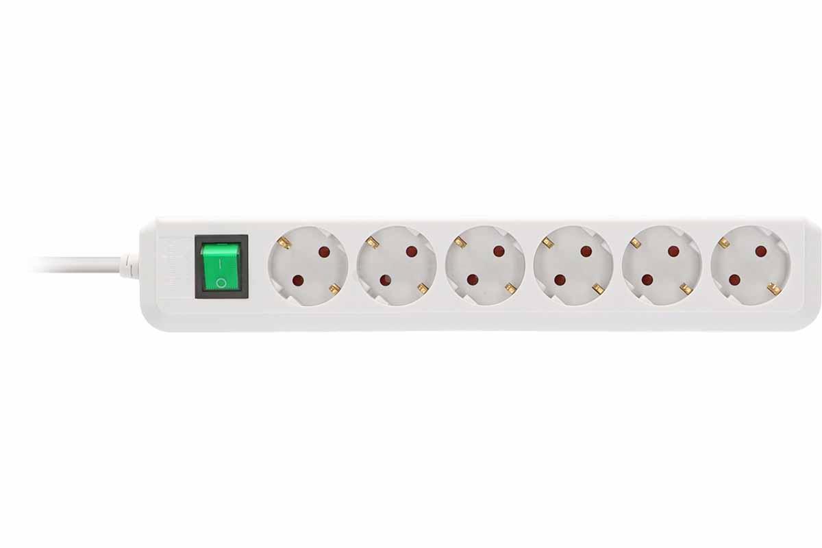 Brennenstuhl Eco-Line, Steckdosenleiste 6-fach, mit Schalter, 3 m Kabel, weiß