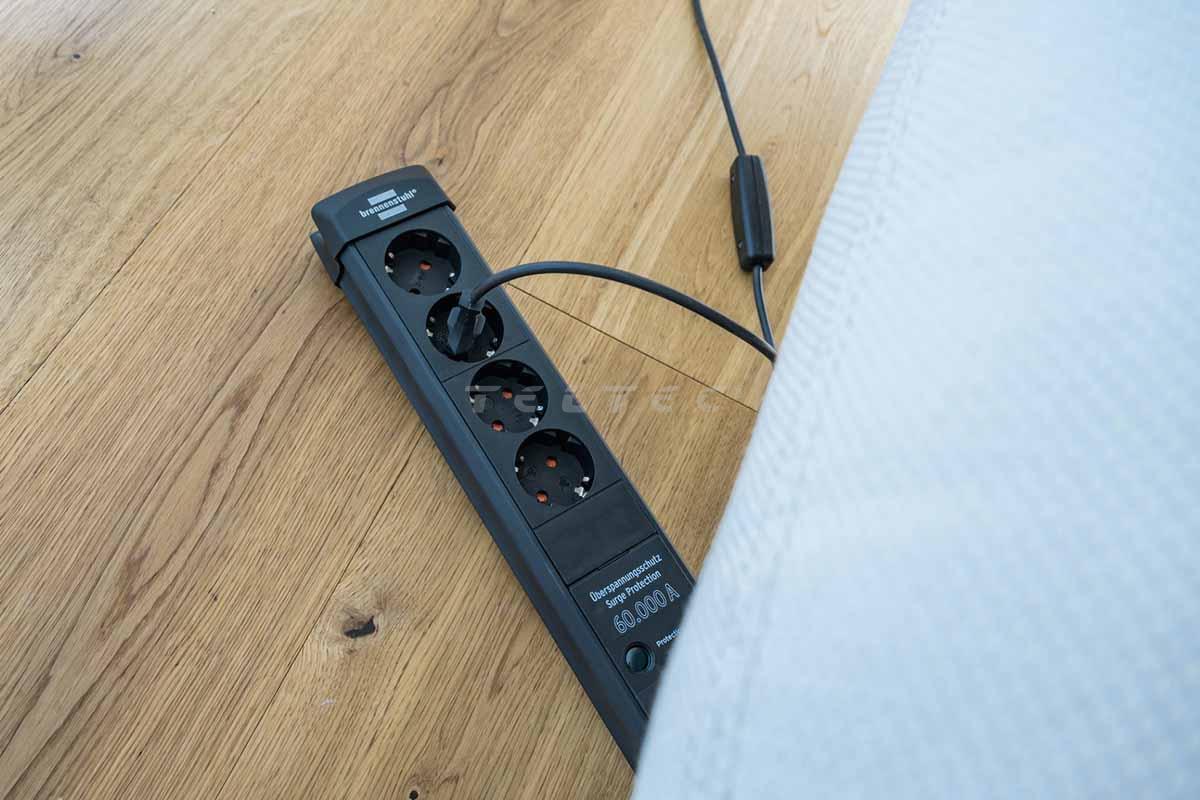 Die Brennenstuhl Premium-Line, Steckdosenleiste 4-fach ist eine Mehrfachsteckdose mit Überspannungssschutz und einem beleuchteten Sicherheitsschalter. Der Überspannungsschutz schützt wertvolle Geräte vor Überspannungen bei Gewitter, Blitzschlag etc. mit einem max. Ableitstrom bis zu 60.000 A. Sie verfügt über eine 1,8 Meter lange Zuleitung und Schutzkontakt-Steckdosen die in einem 45° Winkel angeordnet sind. Somit ist sie für gerade und gewinkelte Schuko-Stecker und auch für Euroanschluss-Stecker geeignet.