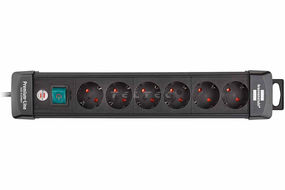 Brennenstuhl Premium-Line Steckdosenleiste 6-fach, mit Schalter, 3 m Kabel, schwarz