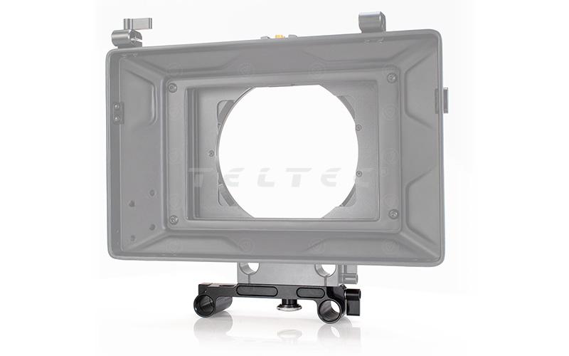 - Die 15 mm Studio Rohrhalterung wird zunächst entweder an der Klemmadapterring 15 mm Rohrhalterung oder am 15 mm Schwenkarm befestigt, um die Verbindung zur Matte Box herstellen zu können