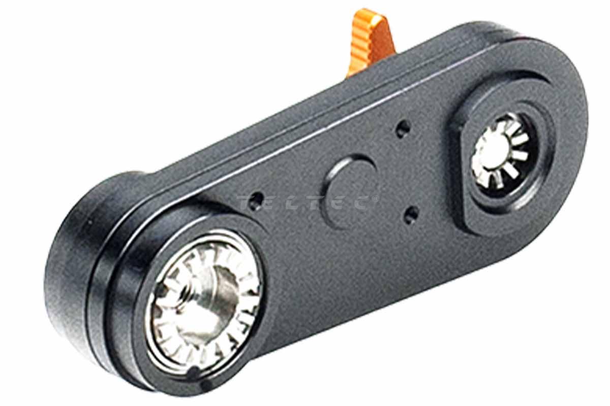 Mit dem Bright Tangerine B2010.1002 Revolvr Atom Swing Arm 1:1 Ratio lassen sich die Zahnräder des Revolvr Atom Follow Focus so flexibel positionieren, dass man die Schärfezieheinrichtung an allen Objektiven, egal welchen Durchmesser sie haben, einsetzen kann.
