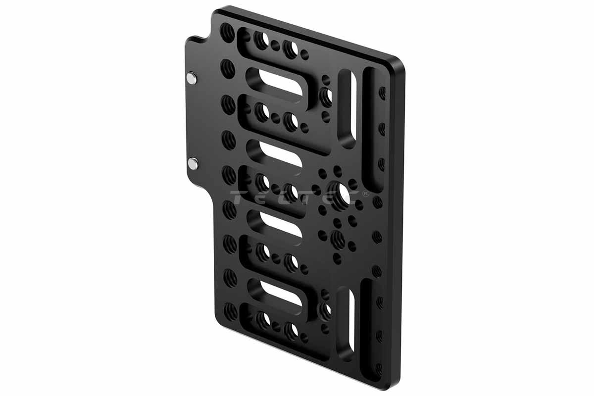Die Bright Tangerine B4002.1080 Rear Cheese Plate dient als Erweiterung der Bright Tangerine B4002.1078 RED KOMODO-X Right Side Plate. Neben einem 1/4″-Rand und MAP M4-Gewindepunkten verfügt sie auch über ein 3/8″-Verdrehschutzgewinde für die sichere Befestigung von Zubehör. Für das Kabelmanagement bietet die hintere Montageplatte zusätzliche Schlitze.