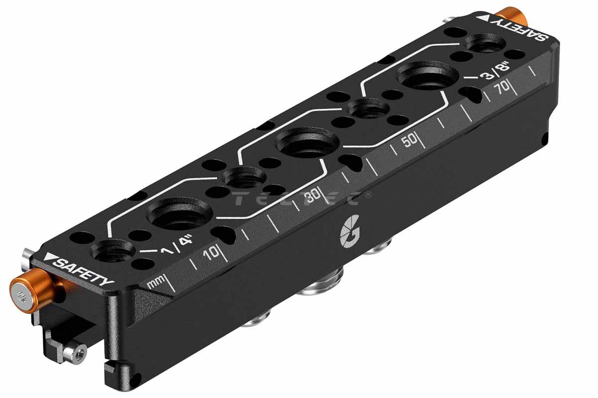 Die Bright Tangerine Universal 90mm NATO Rail erweitert jedes Rig um eine flexible NATO-Schiene mit Sicherheitstops an beiden Enden. Dank verschiebbarer 1/4″- und 3/8″-Schrauben an der Basis kann sie universell an Platten und Kamerarigs befestigt werden. Mit 90 mm Verstellweg und präzisen, lasergravierten Positionsmarkierungen lassen sich Zubehörteile wie NATO-Handgriffe exakt ausrichten. Zusätzlich bietet die Rail eine Reihe von 1/4″- und 3/8″-Anti-Twist-Gewinden für maximale Flexibilität bei der Montage.