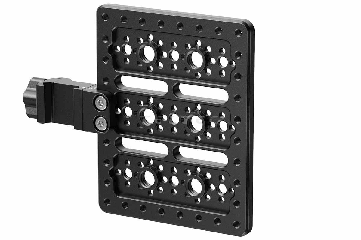 Die Bright Tangerine B4003.1080 Wide NATO Cheesplate (flush) ist eine Anschlussplatte mit zahlreichen Befestigungspunkten. Hierzu zählen: 1/4"- und 3/8"-Gewinde sowie MAP M4-Punkte. Die Cheeseplate wird bündig an einer Standard-NATO-Schiene montiert und dient als Ergänzung für jedes Rig. Dank des minimalistischen Designs ist die Cheeseplate mit Kamera-Builds jeder Größe kompatibel. Zusätzliche Aussparungen dienen zum Kabelmanagement, um den Anschluss von Sendern oder anderen elektronischen Bautilen zu vereinfachen.