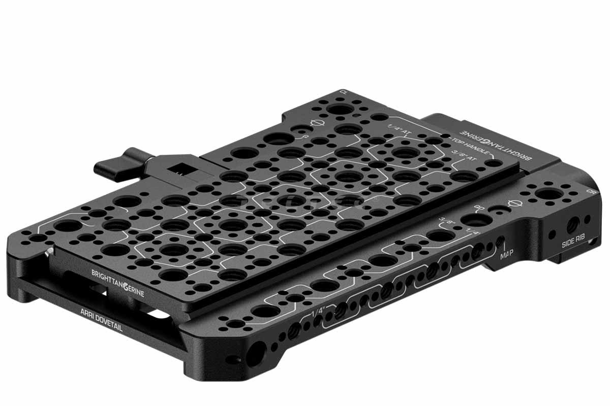 Das Bright Tangerine B4004.1056 Sony VENICE 1 & 2 Sliding Top Plate Mk II ist eine verschiebbare Montageplatte für die Sony VENICE 1 & 2. Die modular aufgebaute Platte verfügt über eine abnehmbare Schwalbenschwanzführung, die zur schnellen Anpassung der Sony VENICE Kamera dient. Sowohl die Schwalbenschwanzführung als auch der Kern der Top Plate sind mit 1/4″- und 3/8″-Verdrehsicherungsgewinden versehen, sodass sie sich ideal für flache Bauweisen eignet.