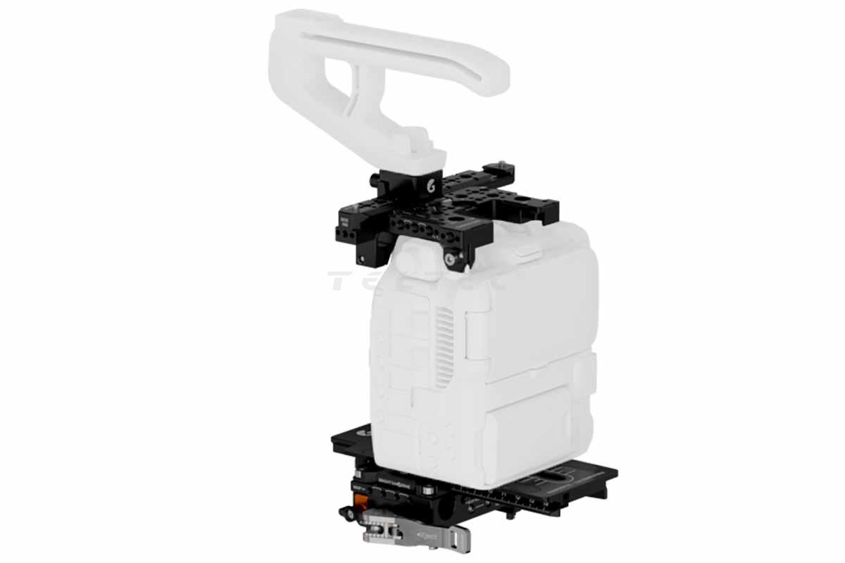 - Top Plate mit 1/4", 3/8", MAP M4-Punkte, einer Cold-Shoe-Halterung und QD-Buchsen