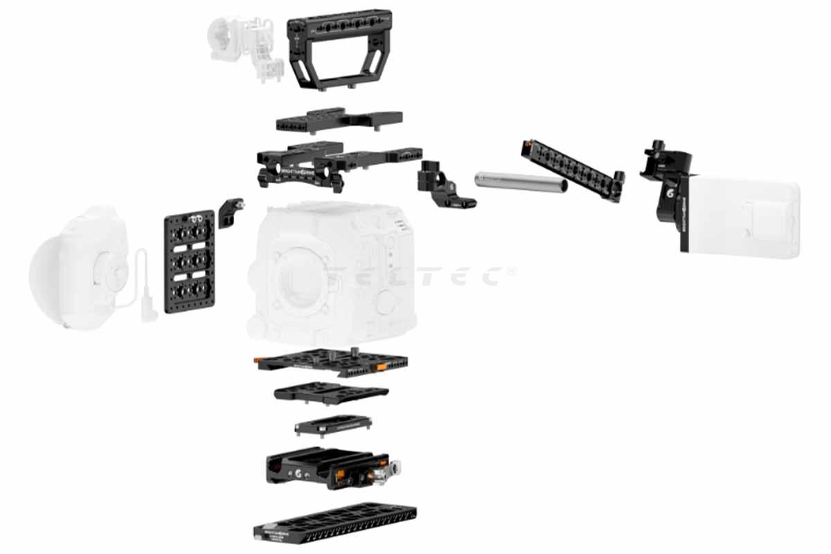 Das Bright Tangerine B4005.0144 LeftField 3 Canon C400 - Advanced Kit ist ein umfangreiches Set aus der LeftField 3 Baseplate, der Top Plate Mk II, dem D-Style Master Handgriff, einer Monitorhalterung, 15-mm-Drumstix aus Titan und spezielles Zubheör für die Canon C400 Kamera, das eine professionelle Zubehörausstattung für professionelle Rigs ermöglicht. Das Kit unterstützt den 15-mm-LWS-Standard und bietet ARRI-Schwalbenschwanz- sowie BUD-Kompatibilität für flexible Setups. Die Top Plate Mk II und die breite Cheeseplate ermöglichen vielfältige Montageoptionen für Zubehör. Alle Anschlüsse und Funktionen der Kamera bleiben dabei zugänglich, inklusive Mikrofonhalterung und Multifunktionsschuh. Mit dem robusten NATO-Monitorscharnier lässt sich der LCD-Sucher optimal ausrichten, und zusätzliche Optionen wie Master Handle Extensions oder das KASBAH Ātman Shoulder Rig erweitern die Einsatzmöglichkeiten. Dieses Kit holt das Maximum aus der C400 heraus – zuverlässig, vielseitig und ohne Kompromisse.