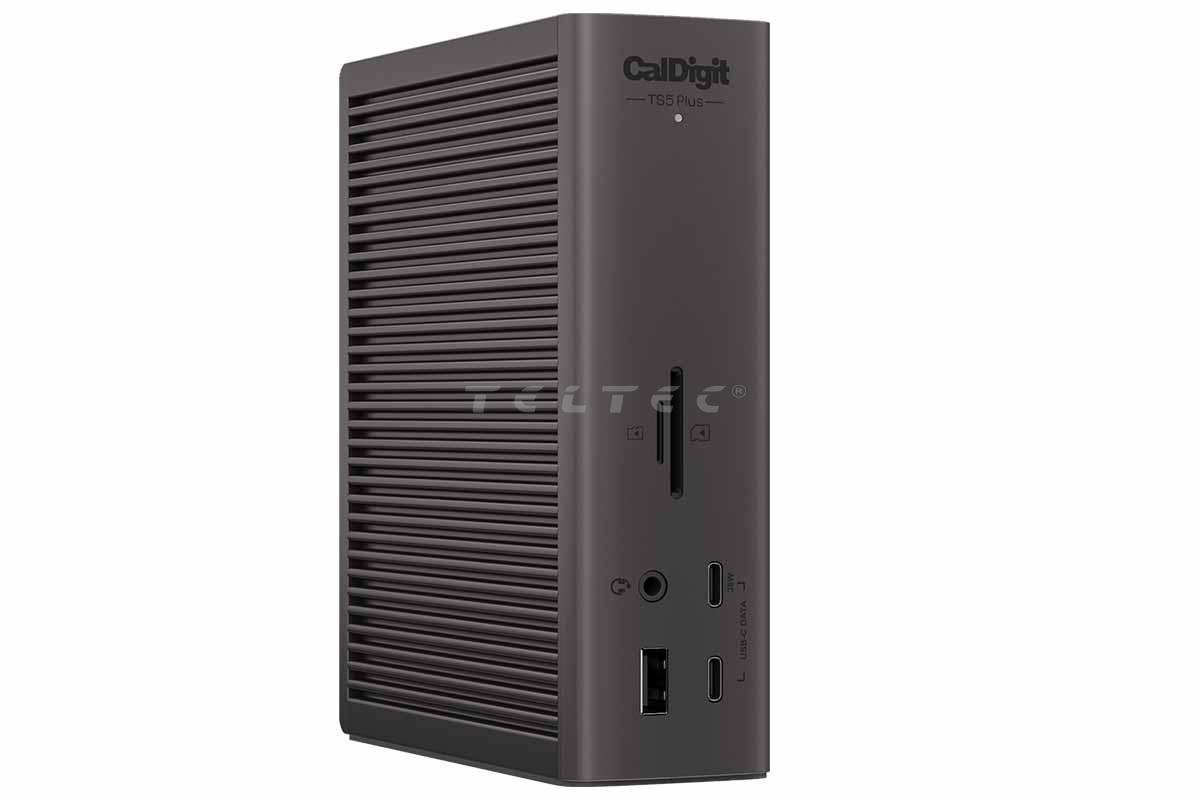 Der CalDigit TS5 Plus ist ein Thunderbolt-5-Dock mit 20 Anschlüssen für professionelle Workflows an macOS- und Windows-Systemen. Er liefert über den Host-Port bis zu 140 W Leistung, integriert 10 GbE-Netzwerk, DisplayPort 2.1, schnelle SD/microSD 4.0 (UHS-II)-Kartenleser sowie Audio-Ein/-Ausgänge. An kompatiblen Windows-Rechnern mit Thunderbolt 5 sind bis zu drei externe Displays möglich; Systeme mit Dual-Display-Support unterstützen bis zu zwei Monitore. Zwei unabhängige USB-Controller sorgen für zusätzliche USB-Bandbreite.