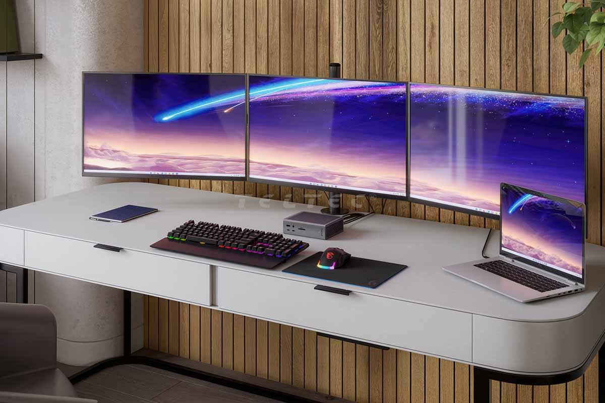 | Schnittstelle | 1x Thunderbolt 5 Host Port (Up to 120Gb/s) 2x Thunderbolt 5 Downstream Ports (80Gb/s) 5x USB-C (10Gb/s) 5x USB-A (10Gb/s) 1x DisplayPort 2.1 1x SD 4.0 (UHS-II) 1x microSD 4.0 (UHS-II) 1x 10 Gigabit Ethernet 1x Front Combo Audio In/Out (3.5mm) 1x Rear Audio Out (3.5mm) 1x Rear Audio In (3.5mm) 1x DC In (24V 13.75A) |