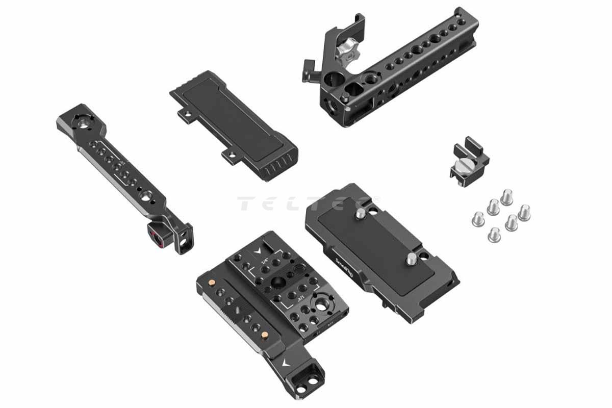 Das SmallRig 3899 Handheld Kit für Canon EOS C70 ist speziell für die C70 angepasst. Neben dem Kameraschutz und komfortablen Handling der Kamera sind zahlreiche Befestigungspunkte für Zubehör vorhanden. Die obere Platte, die Grundplatte und die Seitenplatte können zu einem halben Cage zusammengebaut werden, der die ursprüngliche Griffeinheit und die Mikrofonhaltereinheit trägt. Die so gebaute Basis besteht aus einer Grundplatte und einer abnehmbaren verlängerten Grundplatte. Es kann direkt auf DJI RS 2/RSC 2-Stabilisatoren und Acra-Swiss-Stative montiert werden, indem einfach die verlängerte Grundplatte entfernt wird, was einen schnellen Wechsel zwischen Handheld-, Stabilisator- und Stativaufnahmen ermöglicht. Das Kit wird außerdem mit einer HDMI-Kabelklemme geliefert, um eine versehentliche Signaltrennung zu verhindern und eine stabile Datenübertragung zu gewährleisten und bietet vollen Zugriff auf den Original-Kameragriff und die Tasten.