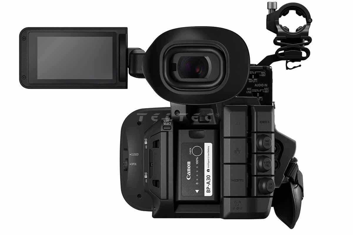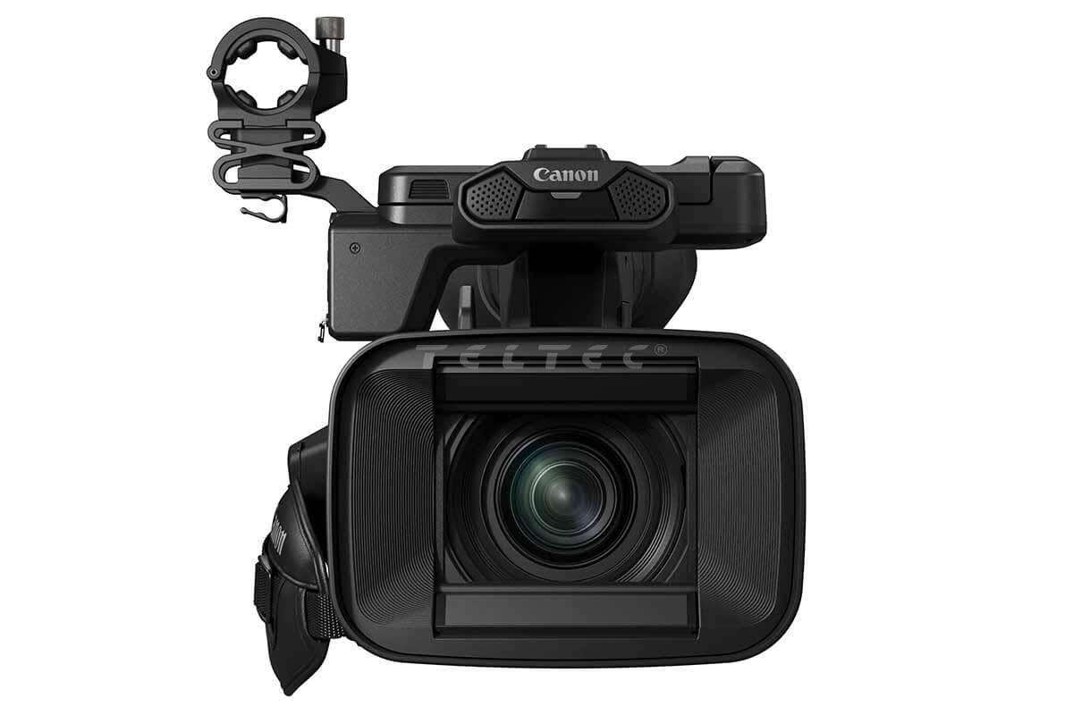 Die Canon XF605 ist ein kompakter, professioneller Broadcast Camcorder mit einem 1" CMOS Sensor und DIGIC DV7 Prozessor. Die Kamera bietet Aufzeichnungen in 4K UHD mit bis zu 60 Bildern in der Sekunde in 4:2:2, 10-Bit (XF-AVC oder MP4). In FullHD bis zu 120 Bilder in der Sekunde. Die Canon XF605 bietet einen 15fachen optischen Zoom sowie einen erweiterten 30fach Zoom in FullHD. Es wurde ein verbesserter Dual pixel CMOS AF mit Eye AF und & EOS iTRAF X einem intelligenten Head Tracking. An Anschlüssen bietet die Canon XF605 einen 12G-SDI- und einen HDMI Ausgang die zeitgleich Bilder ausgeben, einen USB Typ A mit 5 V / 900 mAh Stromversorgung, sowie einen UVC (USB Video Class) fähigen USB-C Anschluss, der die Kamera an einem Computer per Plug&Play als Webcam erkennt. Die Daten lassen sich auf SD-Karten speichern, über die zwei vorhanden SD-Kartenslots können die Daten simultan, in multiplen Formaten & Proxy aufzeichnen. Streaming steht über WiFi oder über den vorhandenen Ethernet-Anschluss zur Verfügung, es werden die IP-Streaming Protokolle UDP, RTP, RTP+FEC unterstützt. Mit der Firmware Version 1.0.1.1 wird die Unterstützung von Canon IP (XC Protokoll), das hocheffiziente, komprimierte Format für 4K Videos XF-AVC 4K Intra, die Unterstützung für vertikale Aufnahmen, sowie die Aktivierung von Gesichts, Augenerkennung und Verfolgung, wenn «Slow and Fast Shooting» auf 24P-120P eingestellt ist.