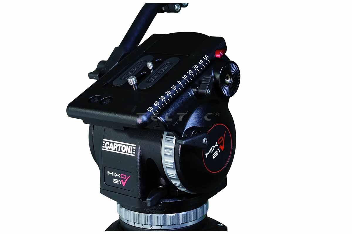 Das Cartoni MIXO 21 ist ein Fluidkopf mit kontinuierlichem Gewichtsausgleich und taktiler 7-Stufen-Fluidbremse. MIXO 21 wurde für die Außenproduktion entwickelt und bietet eine Traglast von bis zu 21 kg. Mit einem Neigungswinkel von +/- 90° passt er sich sowohl an leichte Rigs, als auch an Setups mit voll ausgestatteten ENG-Kameras an.