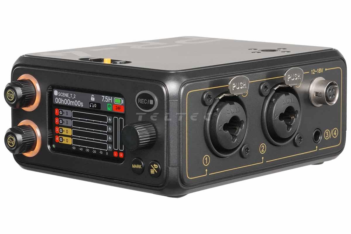 - portabler Audio-Recorder mit 2x XLR- und 1x Stereo-1/8"-TRS-Eingang (für Kanal 3 & 4)
