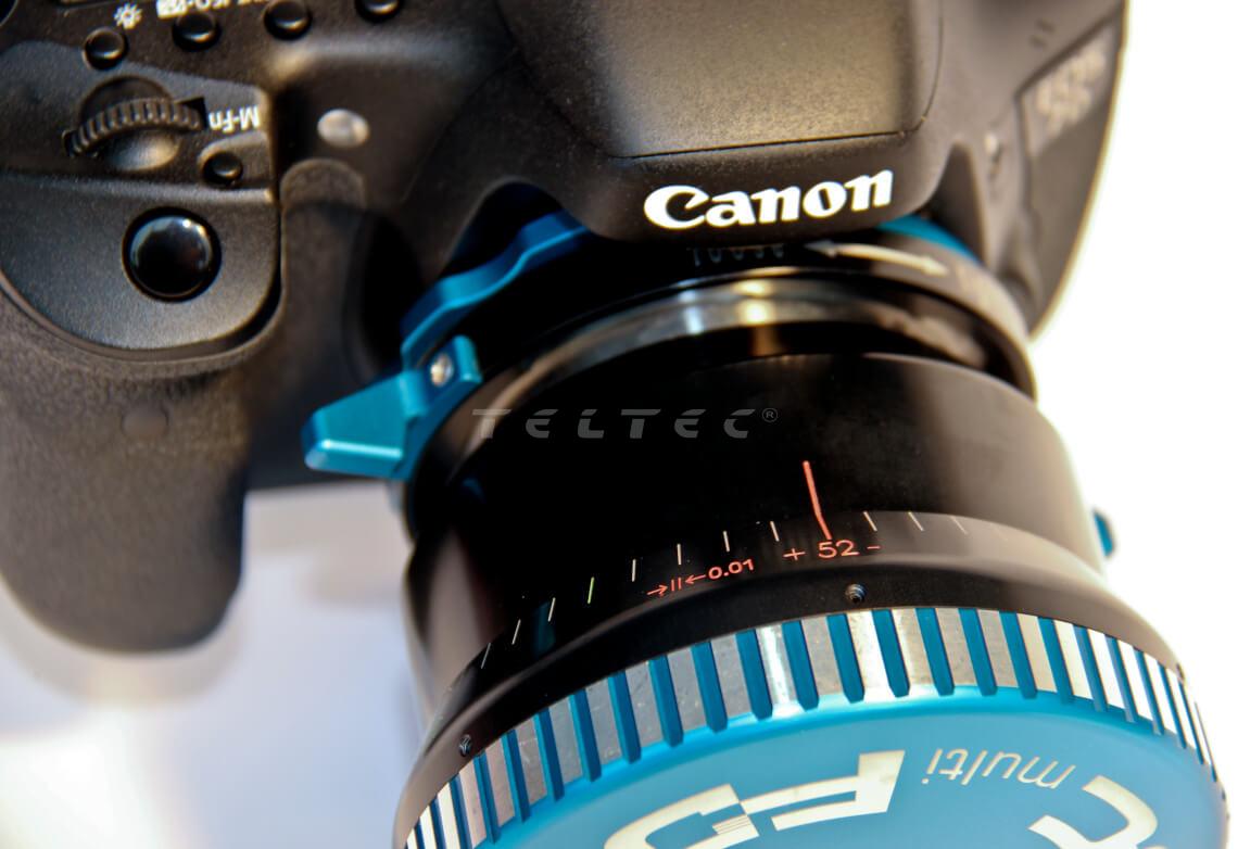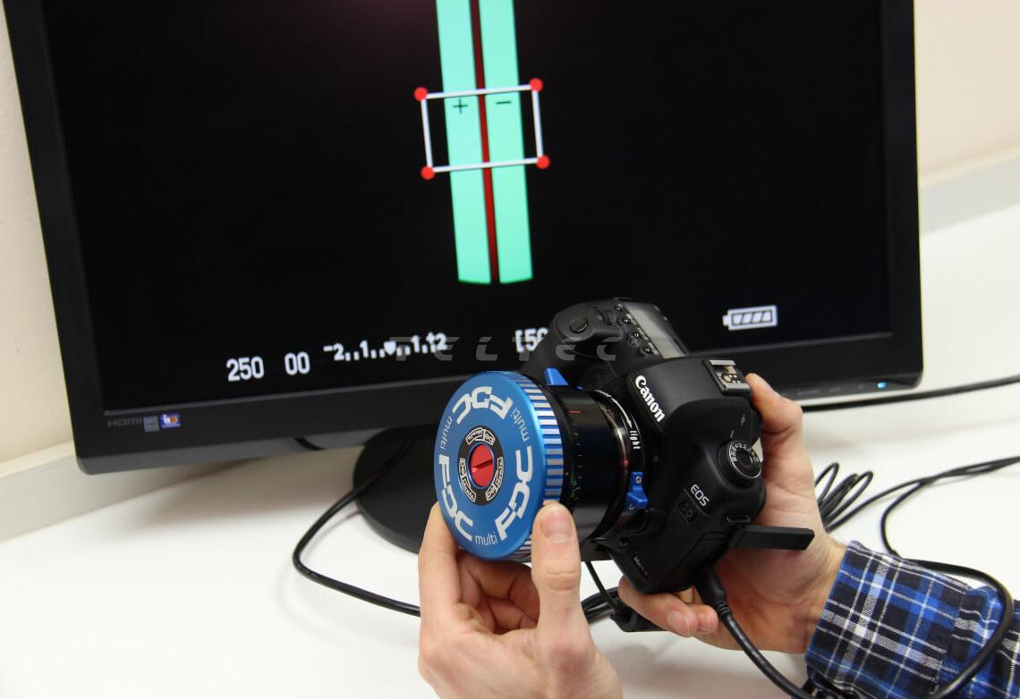 Mit dem Messvorgang kann unverzüglich begonnen werden, sobald der FDC multi am Kamera-Mount montiert ist. Das Auflagemaß von PL Mount Kameras wird direkt gemessen. Das Auflagemaß von Kameras mit Canon EF/EFS Mount wird durch Verwendung des Präzisions- Adapterrings mit derselben Genauigkeit gemessen. Die Möglichkeit den FDC multi sowohl auf PL Mounts als auch auf Canon EF/EFS Mounts zu verwende, ist enorm kostensparend.