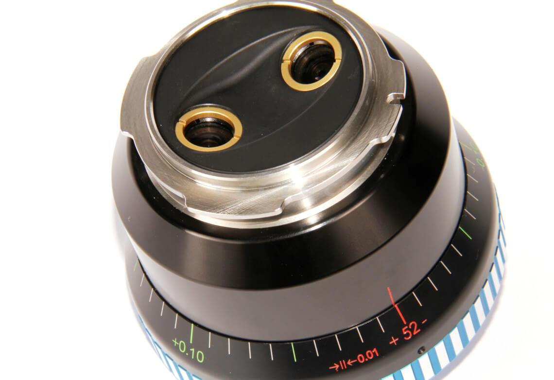 Wenn das Auflagemaß der Kamera korrekt ist, also bei PL Mount Kameras 52,00 mm, zeigt der Skalenring am Handrad des FDC multi, 52". Es ist also keine Korrektur notwendig, da beide Bilder symmetrisch liegen.