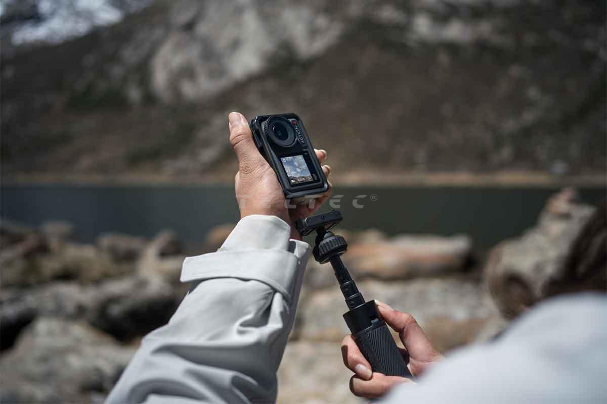 Der DJI Osmo Action Mini-Verlängerungsstab ist ein ausziehbarer Selfie Stick für die DJI Osmo Action 4. Er ist in Handflächengröße erhältlich und verfügt über vier ausziehbare Abschnitte für eine bequeme Nutzung. An der Unterseite befindet sich ein integriertes Stativ, das für Stabilität bei Aufnahmen sorgt. Das Kugelgelenk-Design ermöglicht eine einfache Einstellung des Aufnahmewinkels.
