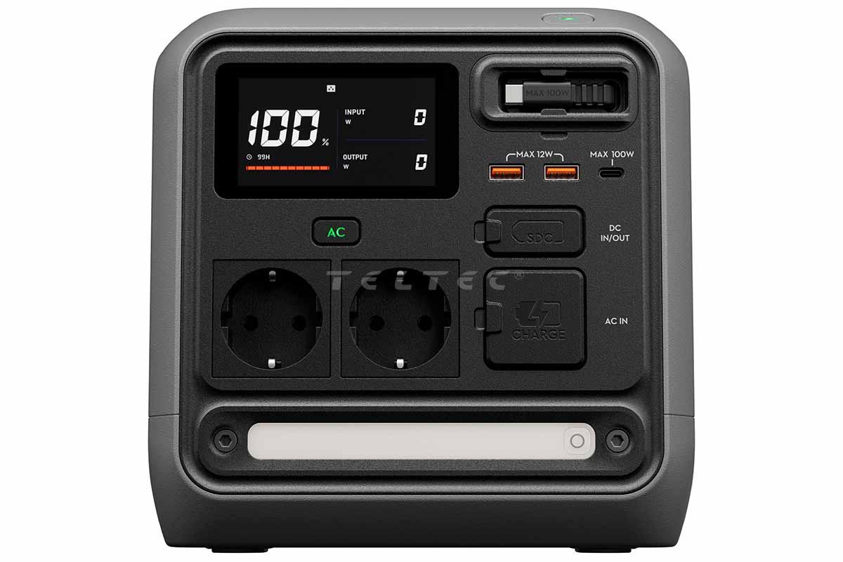 Der DJI Power 1000 Mini (EU) Akku ist eine kompakte 1-kWh-Powerstation mit einem integriertem 400-W-Kfz-Ladegerät und einem 400-W-MPPT-Modul. Sie kann ausgewählte 1.200-W-Geräte mit Strom versorgen und bietet eine optimierte Umwandlungseffizienz im Niedriglastbereich. DJI Power 1000 Mini unterstützt Laden über das Stromnetz, Solarpanels oder das Auto. Mit dem integrierten 400-W-Kfz-Ladegerät wird die Powerstation direkt an die Autobatterie anschlossen. Eine vollständige 1-kWh-Aufladung dauert beim Fahren ca. 160 Minuten. Im Schnelllade-Modus am Stromnetz lädt die DJI Power 1000 Mini in ca. 75 min von 0 % auf 100 % bzw. in 58 min bereits auf 80 %. Für den Anschluss an einem Solarpanel ist ein 400-W-MPPT-Modul integriert. Eine vollständige Aufladung dauert dabei ca. 160 min. Weiterhin ist ein ausziehbares 100-W-USB-C-Kabel integriert, das zum Aufladen von Smartphones, Tablets oder Laptops geeignet ist. Dank intelligentem Akkumanagementsystem, bietet sie einen sicheren Betrieb. Dabei überwachen 10 integrierte Temperatursensoren die Wärmeableitung, wobei Temperatur und Betriebsstatus in Echtzeit in der DJI Home App angezeigt werden können. 26 interne Sicherungen ermöglichen den sofortigen Lade- und Entladeschutz, sobald Sicherheitsgrenzen überschritten werden, und verhindern so einen abnormalen Betrieb.