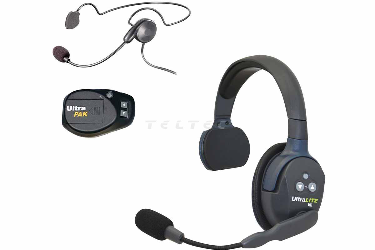 Der Eartec UltraLITE Intercom wurde für fünf Personen entwickelt. Er besteht aus einer HUB-Mini-Basisstation, fünf UltraLITE-Doppel-Headsets, einem Ladegerät mit acht Anschlüssen und entsprechendem Adapter, einem großen Soft-Side-Koffer und allen erforderlichen Batterien für die Stromversorgung. Der HUB ist so konzipiert, dass er die Reichweite des vorhandenen Eartec-Funksystems um über 300 Meter erweitert und darüber hinaus tragbar ist. Jedes Headset wiegt nur 120g, kann Audio mit einer Geschwindigkeit von 1,152 Mbps übertragen und hält sechs Stunden durch, bevor es wieder aufgeladen werden muss. Das Mikrofon ist um 270° schwenkbar.