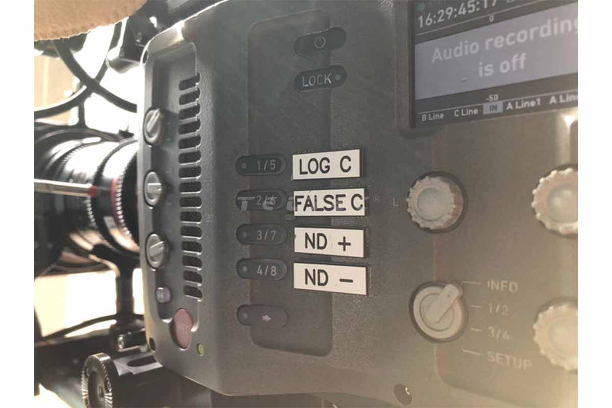 Die Userbutton Tag-Etiketten dienen zur Markierung der Belegung von User Buttons an einer ARRI Kamera und ermöglichen die schnelle Wiedererkennung. Das Set umfasst folgende Markierungen: je 4 mal PEAK, GAMMA, FALSE C, ND +, ND -, LOG C und je 2 mal SURRO, DESQU, ZEBRA, WFM, STATUS, LINES, LOOK, BARS. Die Sets werden als zusammenhängender Bogen geliefert und können leicht entlang gerader Kanten gebrochen werden, um sie beispielsweise mit Klettverschluss zu befestigen.