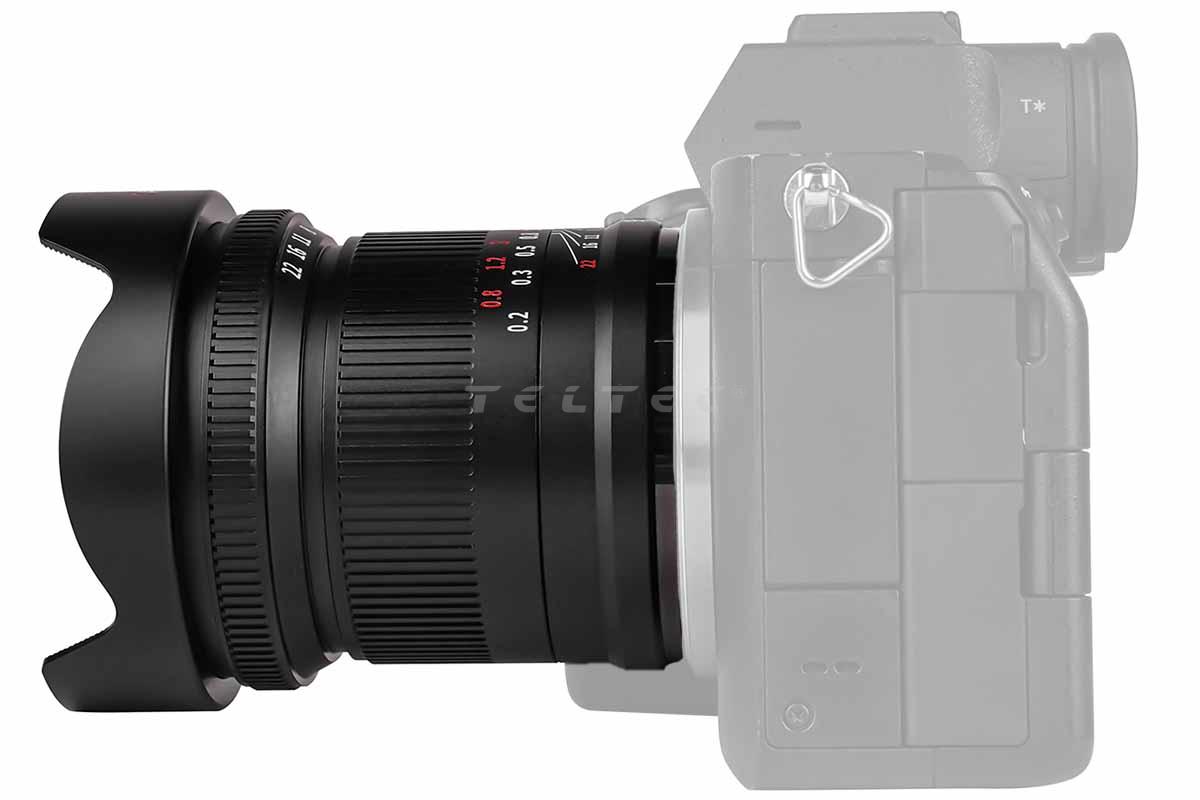 Das 7Artisans 9mm f/5,6 für Sony E (Upgrade) überzeugt als eines der extremsten Super-Weitwinkelobjektive ohne Fisheye-Effekt für spiegellose Vollformatkameras. Es ist ein sehr zuverlässiges und robustes Objektiv im Metallgehäuse und realisiert beeindruckende Aufnahmen mit einem Bildwinkel von weiten 132 Grad. Es verfügt über ein hochwertiges optisches Design, bestehend aus 16 Elementen in 11 Gruppen. Somit ist eine hohe Abbildungsleistung, kombiniert mit hervorragender Schärfe, garantiert. Des Weiteren bietet das Objektiv eine geringe Naheinstellungsgrenze von nur 20cm.