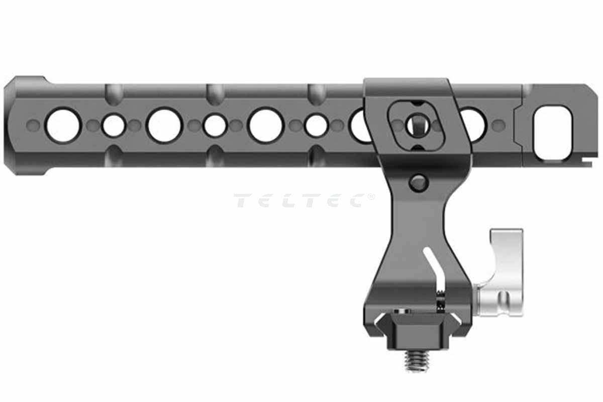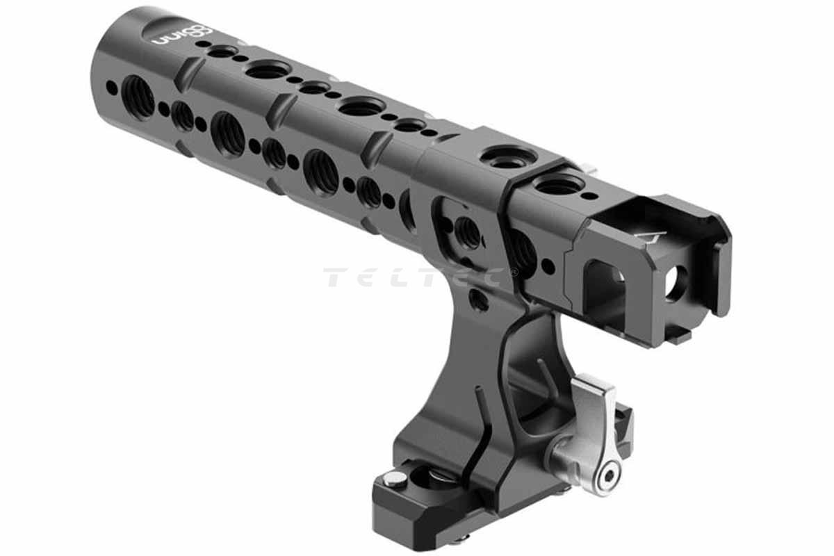 Das 8Sinn Top Handle Pro V2 + 8Sinn Safety NATO Rail 60mm ist ein aus Aluminium gefertigter Kameragriff. Er ist mit einem Quick-Release-System ausgestattet, welche eine schnelle Montage oder Demontage des Griffes am Käfig ermöglicht. Der Griff wird mittels NATO-Schiene oder mit mindestens zwei 1/4"-Gewinden befestigt.