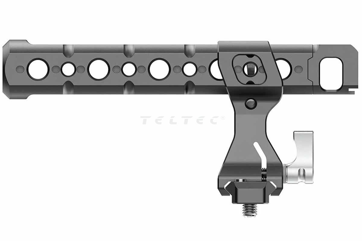 Das 8Sinn Top Handle Pro V2 + 8Sinn Safety NATO Rail 95mm ist ein aus Aluminium gefertigter Kameragriff. Er ist mit einem Quick-Release-System ausgestattet, welche eine schnelle Montage oder Demontage des Griffes am Käfig ermöglicht. Der Griff wird mittels NATO-Schiene oder mit mindestens zwei 1/4"-Gewinden befestigt.