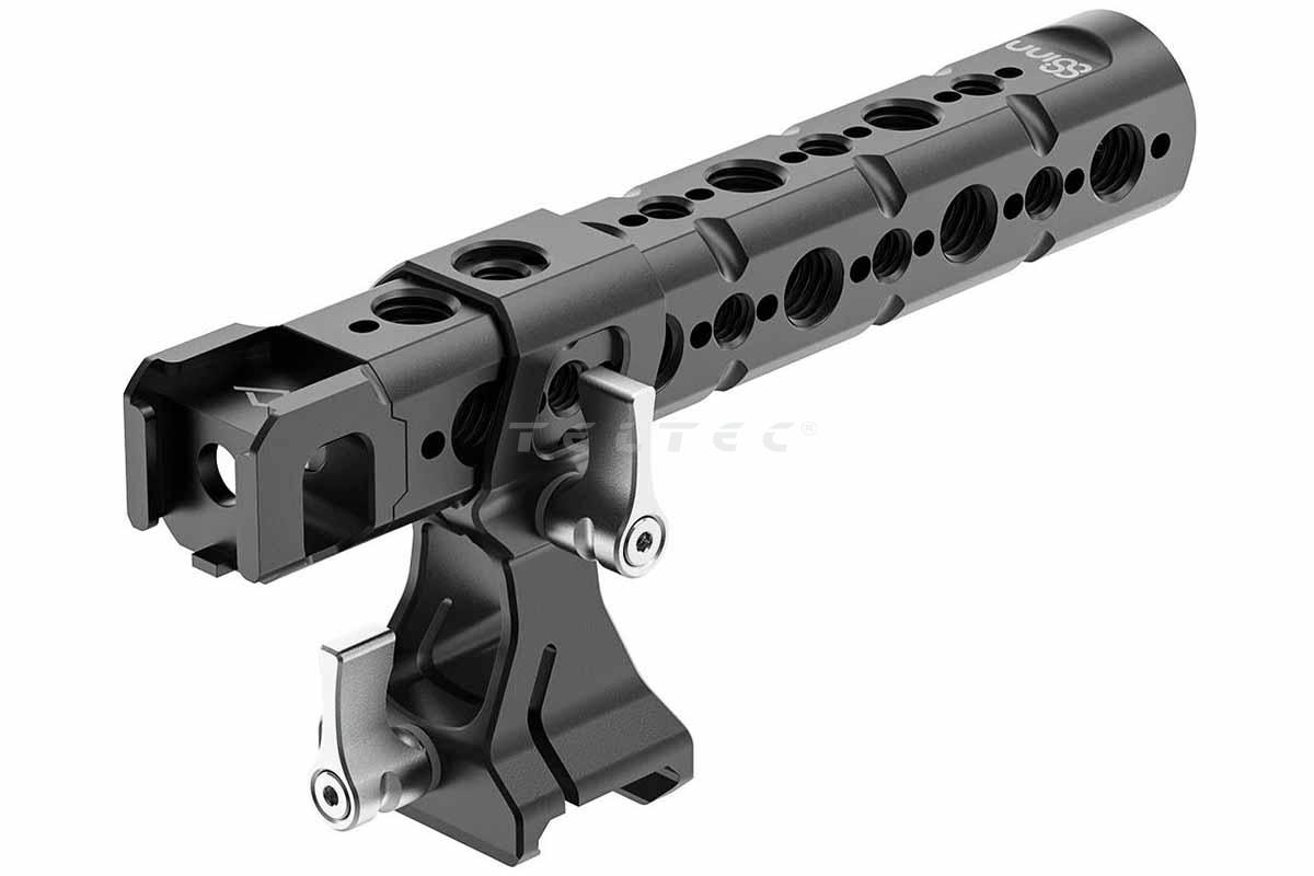 Das 8Sinn Top Handle Pro V2 ist ein aus Aluminium gefertigter Kameragriff. Er ist mit einem Quick-Release-System ausgestattet, welche eine schnelle Montage oder Demontage des Griffes am Käfig ermöglicht. Der Griff wird mittels NATO-Schiene oder mit mindestens zwei 1/4"-Gewinden befestigt.