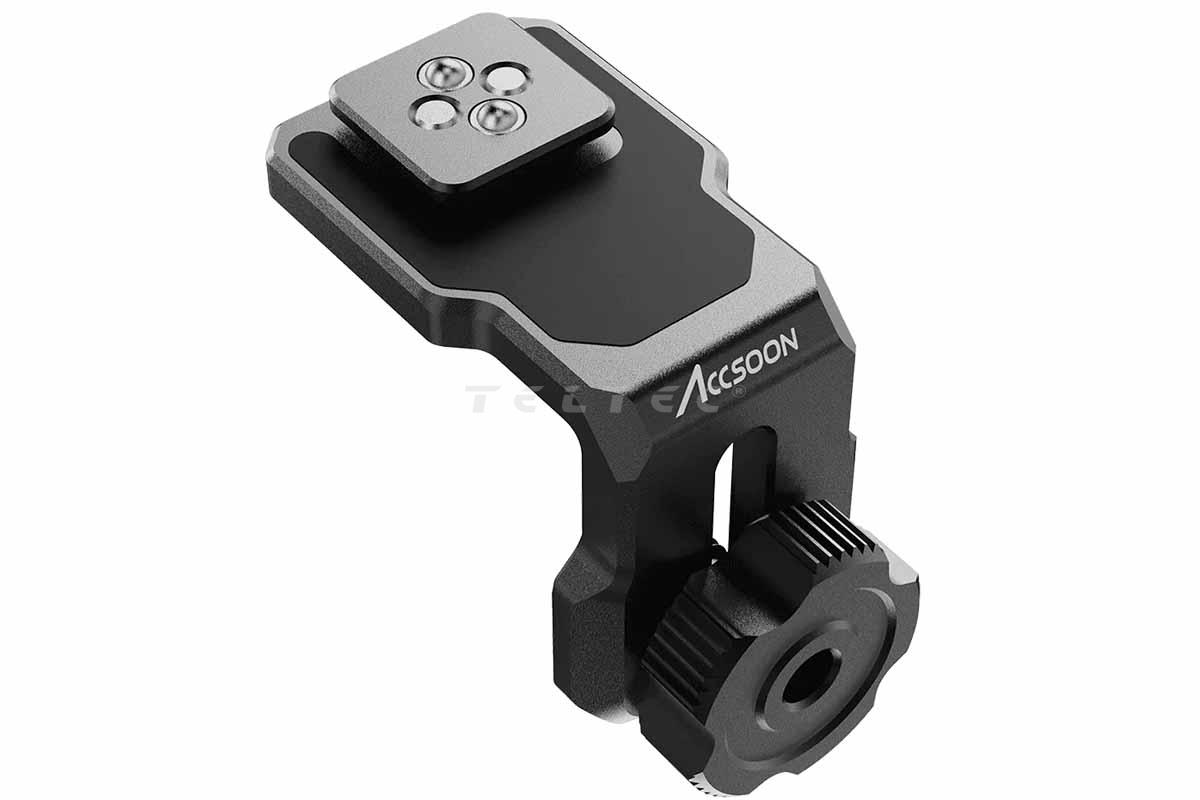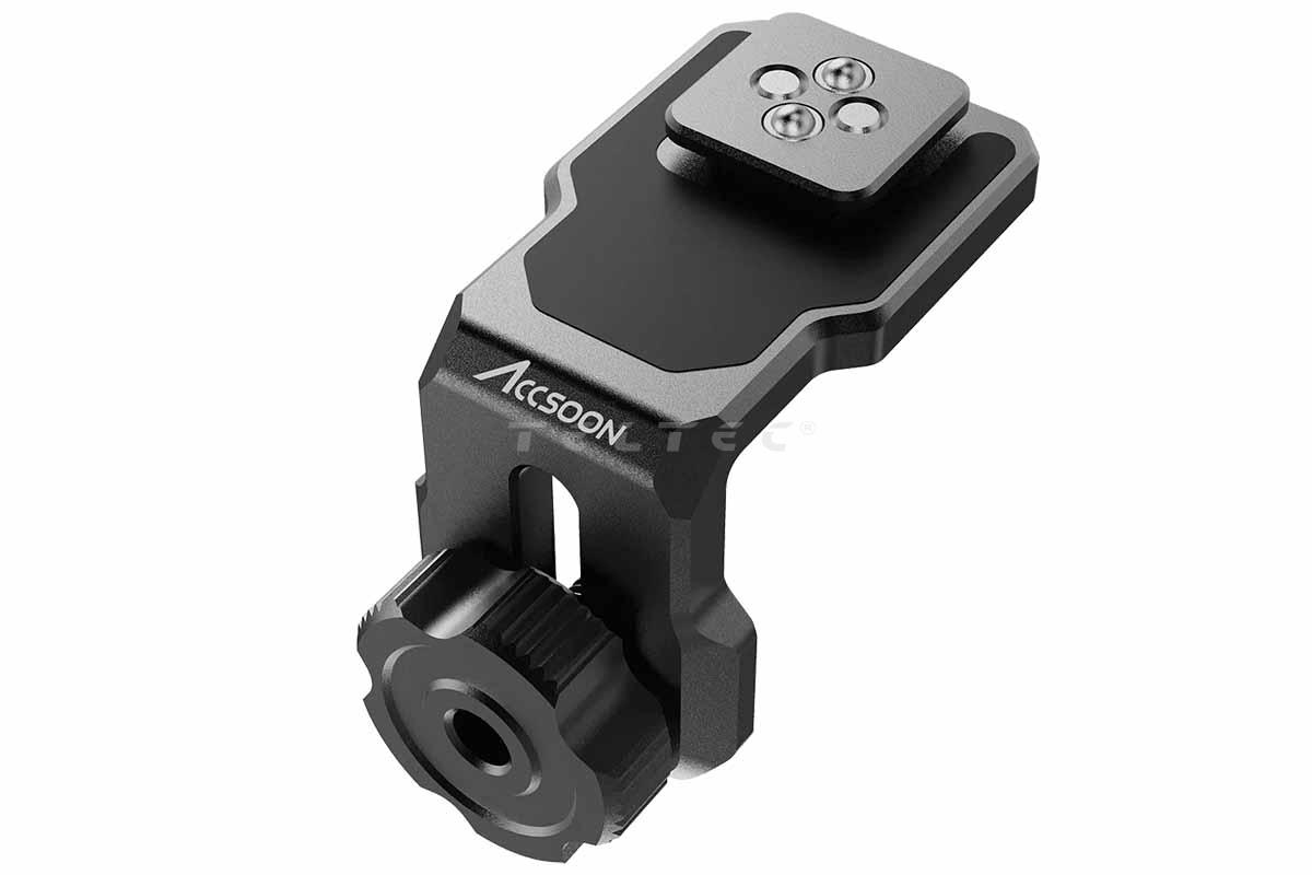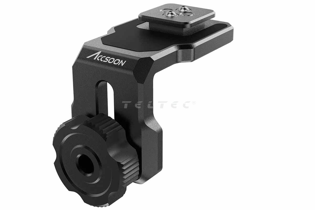 Der Accsoon Adapter für Gimbal ACC02 ist ein Gimbal-Montageadapter, um einen Accsoon CineView oder CineEye 1/2S Funksender auf einem DJI Ronin-S Gimbal oder einer Kamera mit Cold-Shoe-Anschluss zu befestigen. Der Adapter wird an der Unterseite des Senders befestigt und mittels Schnellspannsystem am Gimbal montiert.