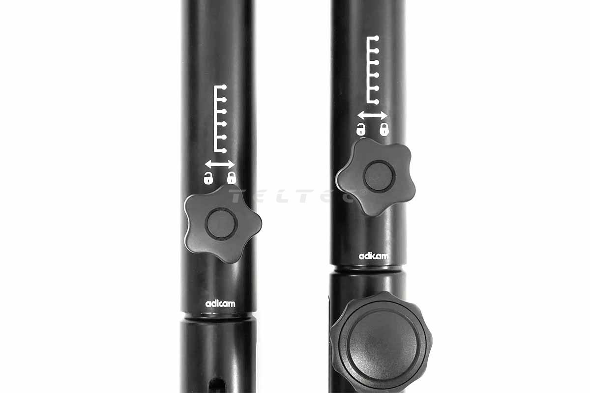 Die adicam Height Adjustable Legs (Other Cart) sind höhenverstellbare Beine für alle adicam Wagen außer dem Standard Modell. Das Set besteht aus vier Beinen mit Befestigungsmaterial. Der Satz ermöglicht eine Anpassung der Höhe der obersten Ablage des Wagens im Bereich von 25 cm. Die Veränderung kann um eine Stufe (5 cm) nach oben oder um drei Stufen (15 cm) von der normalen Beinlänge nach unten erfolgen. Dieses Zubehör erfordert keine zusätzlichen Werkzeuge für die Einstellung. Die Beine bestehen aus Aluminium, was sie leicht, stabil und langlebig macht.