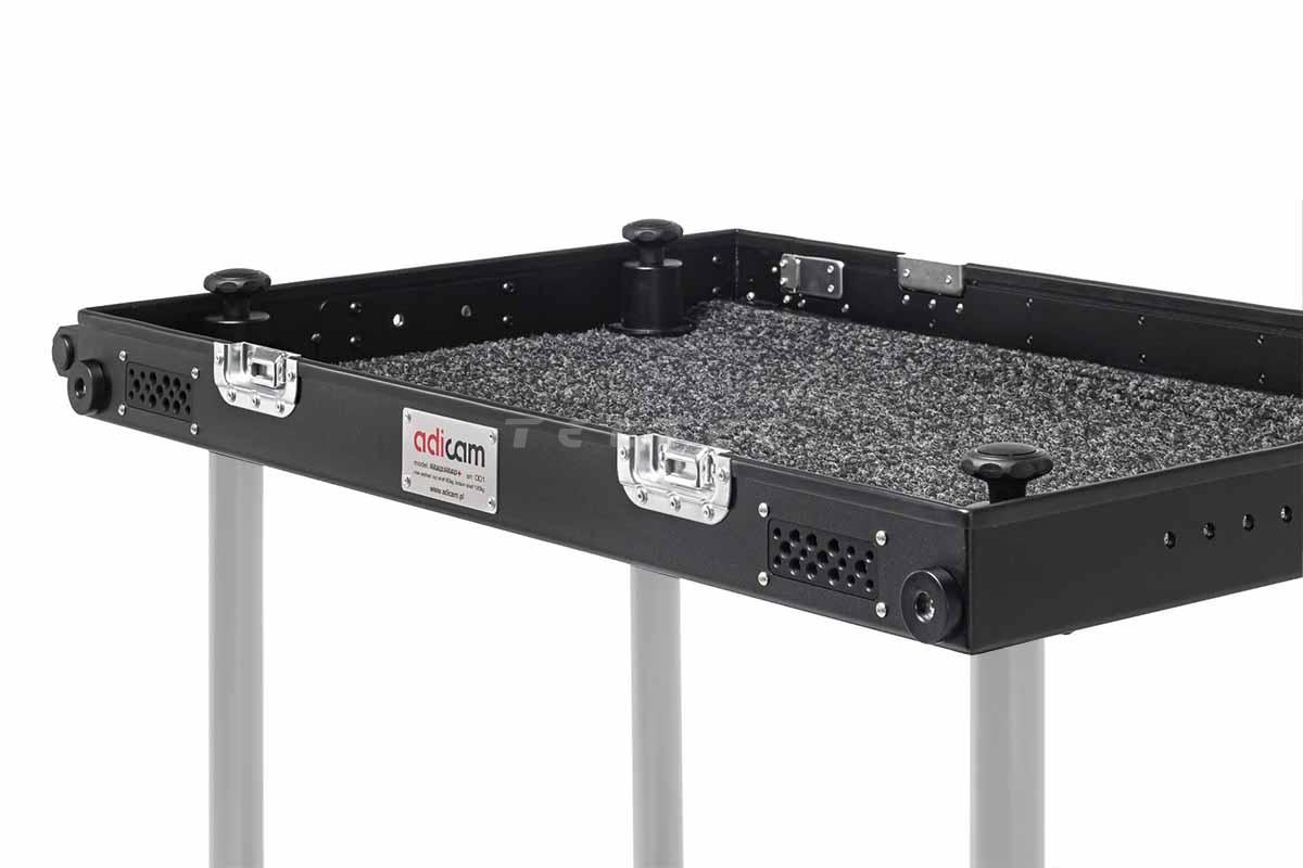 Das adicam Mini+ Top Shelf ist eine obere Ablage für den adicam Mini+ Wagen. Dieses Regalsystem bietet mehrere Vorteile, die es zu einer ausgezeichneten Wahl für die Aufbewahrung Ihrer Foto- oder Videoausrüstung machen. Die Plattform verfügt über einen klappbaren Rand, der in Sekundenschnelle geöffnet werden kann. Mit nur zwei zusätzlichen Entriegelungsschlössern an der Seite des Regals hat man sofort Zugriff auf die Ausrüstung. Das Topshelf ist mit integrierten Gewindeplatten ausgestattet. Diese Mischung aus 1/4'' und 3/8'' Gewindelöchern ermöglicht eine einfache Montage und Demontage der Foto- oder Videoausrüstung. Zubehör kann problemlos befestigt und entfernt werden, ohne zusätzliche Adapter verwenden zu müssen. Zusätzlich verstärkt und aus hochwertigem Aluminium gefertigt, bietet das Regalsystem eine ideale Kombination aus Leichtigkeit, Haltbarkeit und Stabilität.
