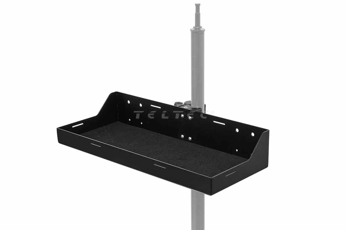 Das adicam Utility Side Shelf ist eine seitliches Regal, welches für den adicam-Wagen genutzt werden kann. Es wird an der schmalen Seite des Wagens montiert und bietet zwei mögliche Montagekonfigurationen. Das Utility Side Shelf kann problemlos montiert oder demontiert werden, ohne das obere Regal des Wagens entfernen zu müssen. Durch die Verwendung einer zusätzlichen Verstärkung (im Lieferumfang enthalten) und der Superklemme 035 kann das Regal sicher an jedem Ständer befestigt werden. Dieses Regal schafft zusätzlichen Stauraum für Taschen, Batterien, Netzteile oder andere Ausrüstung. Die Innenseite ist mit einem weichen Teppich ausgelegt. Das Regal verfügt über zusätzliche Schlitze an den Seiten, die sich ideal zur Befestigung von Klettverschlüssen eignen. Die maximale Tragfähigkeit beträgt 30 kg.