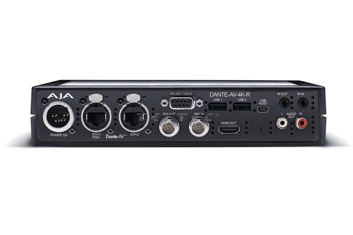 Der AJA Dante AV 4K-R ist ein IP Video Receiver, der Video- und Audiostreams vom Dante AV Ultra IP Videoprotokoll und den JPEG 2000-Videocodec wandelt. Dies ermöglicht die synchrone Übertragung von Audio- und Videosignalen zwischen verschiedenen Geräten. Der Dante AV Decoder bietet die Möglichkeit hochqualitatives, visuell verlustfreies Video bis zu 4K/UltraHD Auflösung in einem 1-GigE-Netzwerk bereitzustellen, Dante AV 4K zeichnet sich durch Benutzerfreundlichkeit, Interoperabilität sowie eine integrierte Steuerung, mit vollständig zeitlich ausgerichteten und unabhängig voneinander routbaren Audio- und Videoströmen, aus. AJA Dante AV 4K-R ist mit der Dante Controller Software kompatibel, die zur Einrichtung des Video- und Audiosignal-Routings zwischen Dante-Geräten, dient. Darüber hinaus wird die Steuerung der Video- und Audioverbindungen im Dante-Setup sowie die Übertragung von Audio und Video in Echtzeit über ein Ethernet-Netzwerk unterstützt.